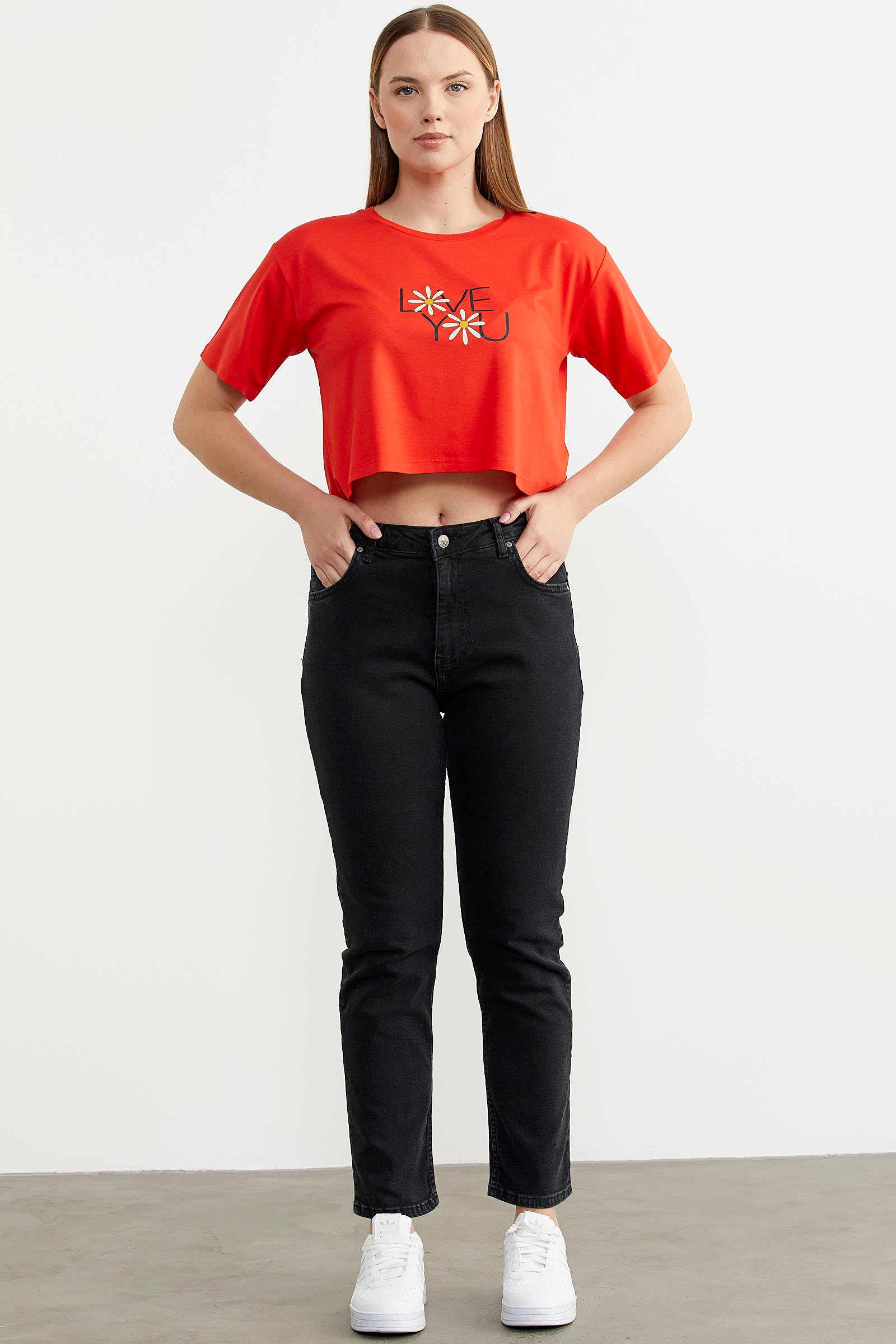 The oversize printed crop t-shirt is perfect for summer with its flowing structure and vibrant colors.