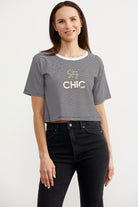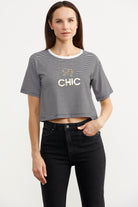 Bright Printed Striped Crop T-Shirt - Black