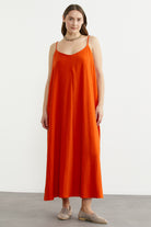 Ayarlanabilir Askılı Uzun Krep Elbise - Turuncu