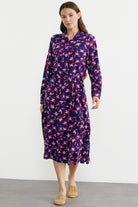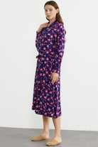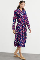 Desenli Uzun Kol Viskon Gömlek Elbise - Saks