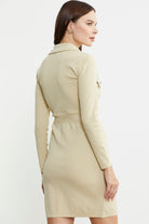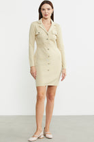 The jacket collar, metal button detailed knit dress attracts all the attention with its elegant details.