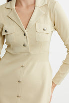 Knitted Dress with Decorative Button Details - Cream