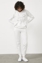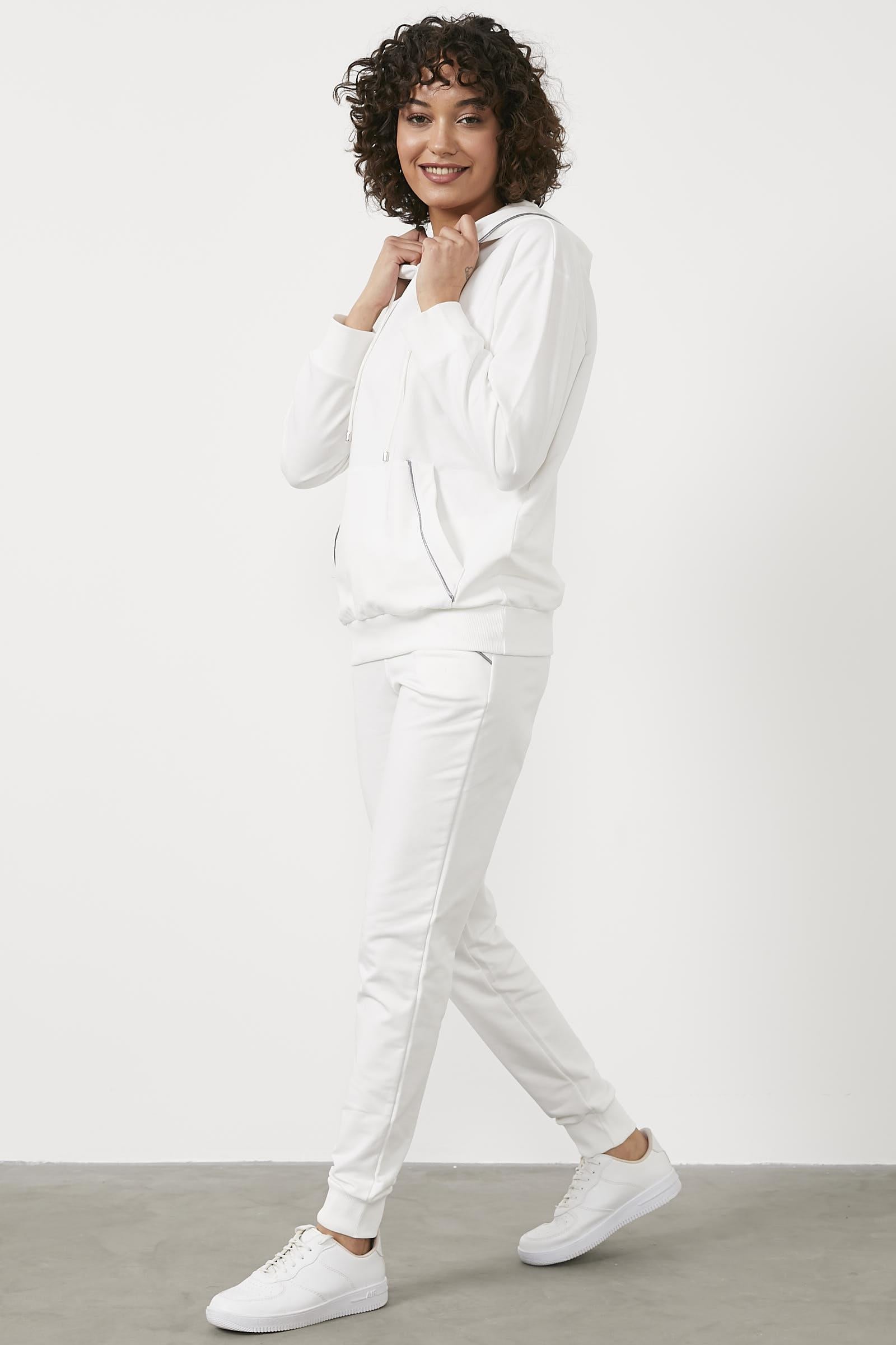 Hooded Kangaroo Pocket Tracksuit Set - Ecru