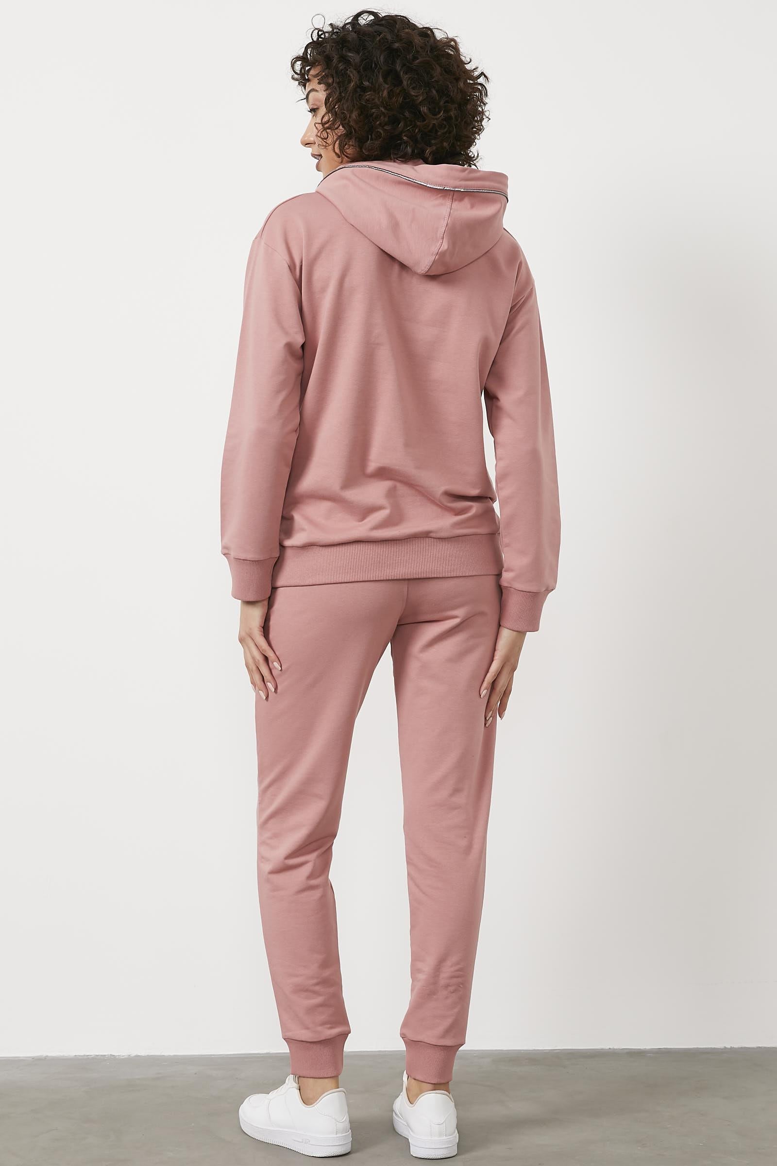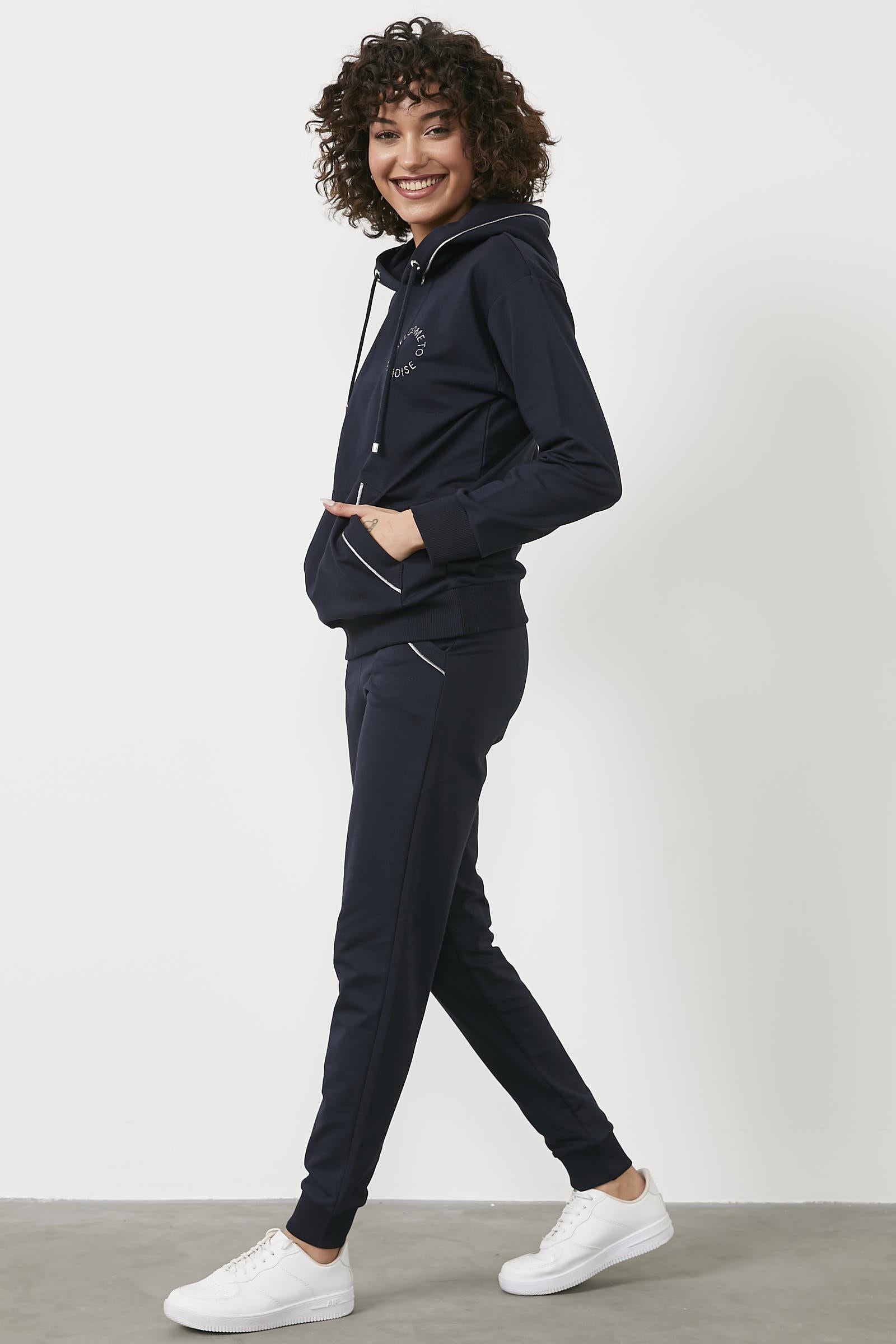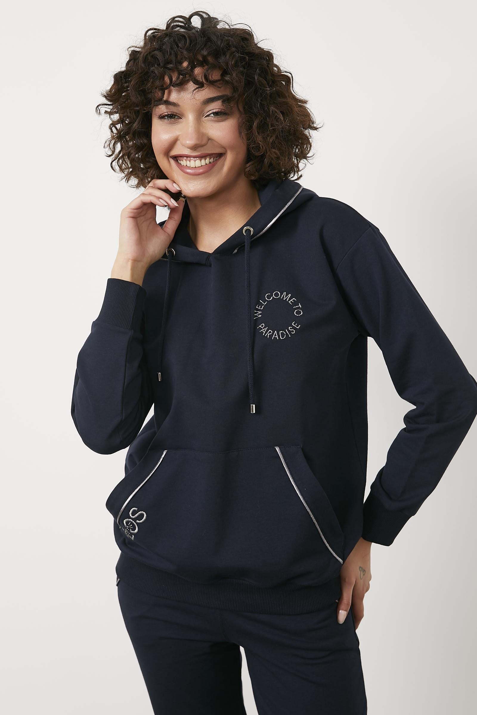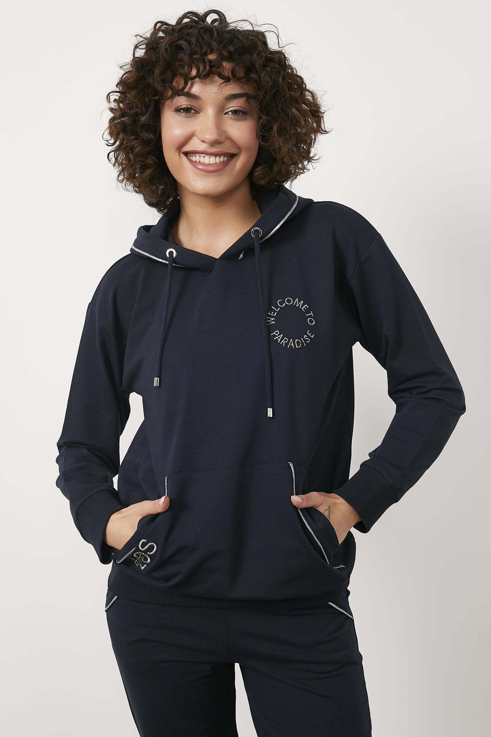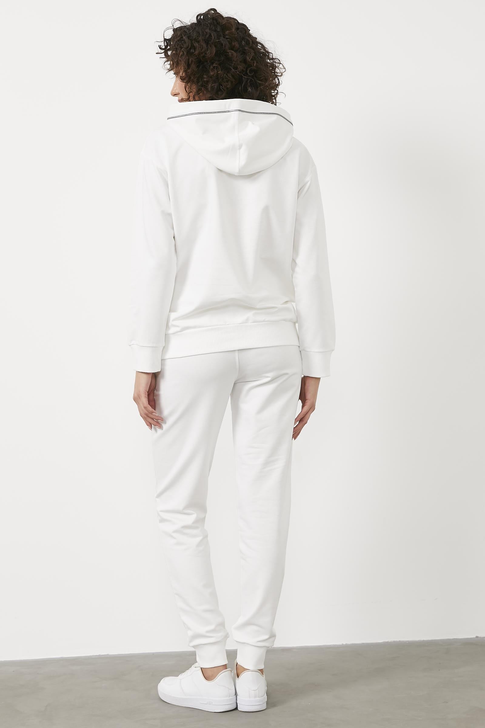 Standing out with its hooded form, the sweatshirt helps you stand out by offering an eye-catching style with its kangaroo pocket detail. Elastic drawstring trousers keep you warm and comfortable with its soft structure.