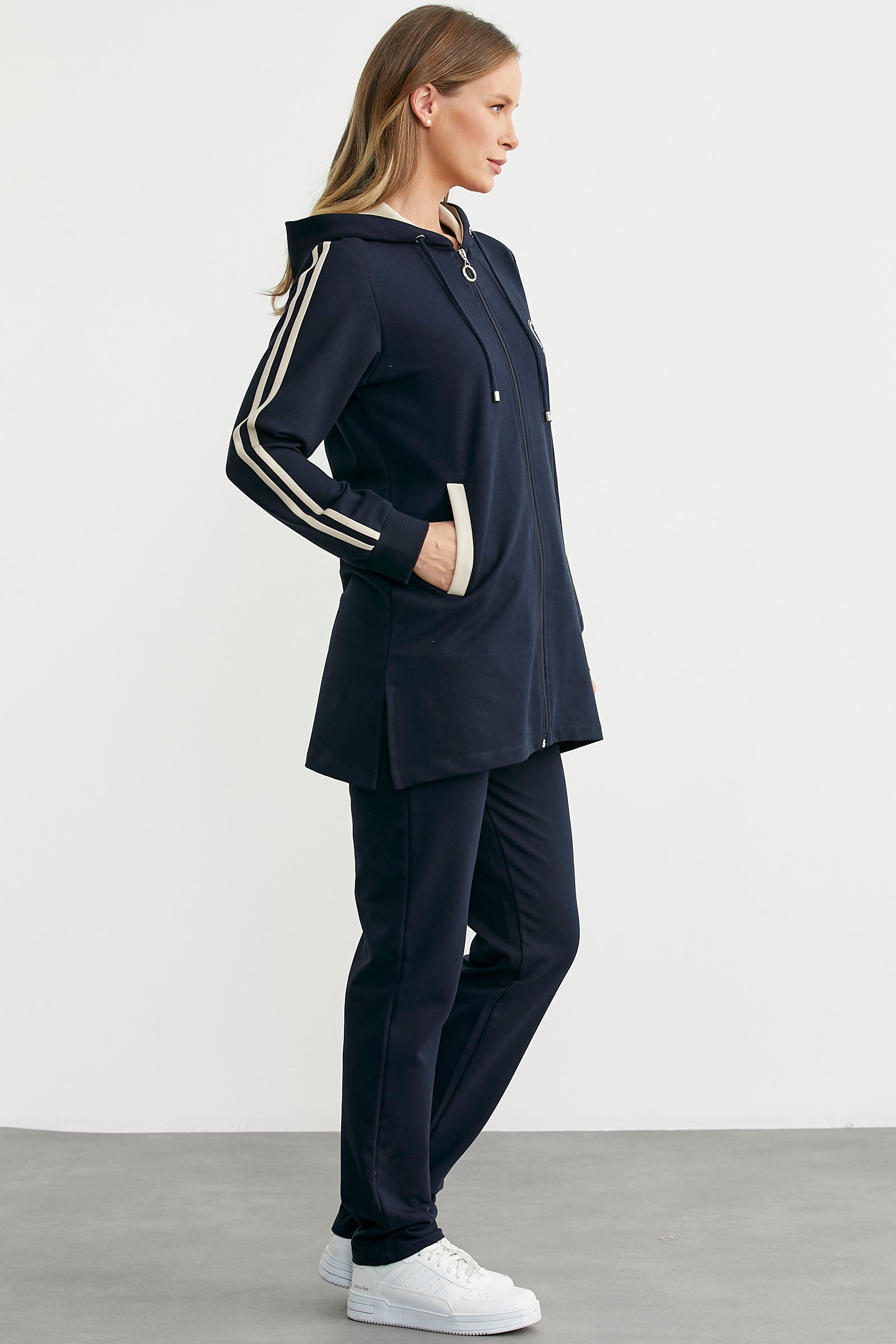 Kapüşonlu Tam Fermuarlı Eşofman Takım - Lacivert