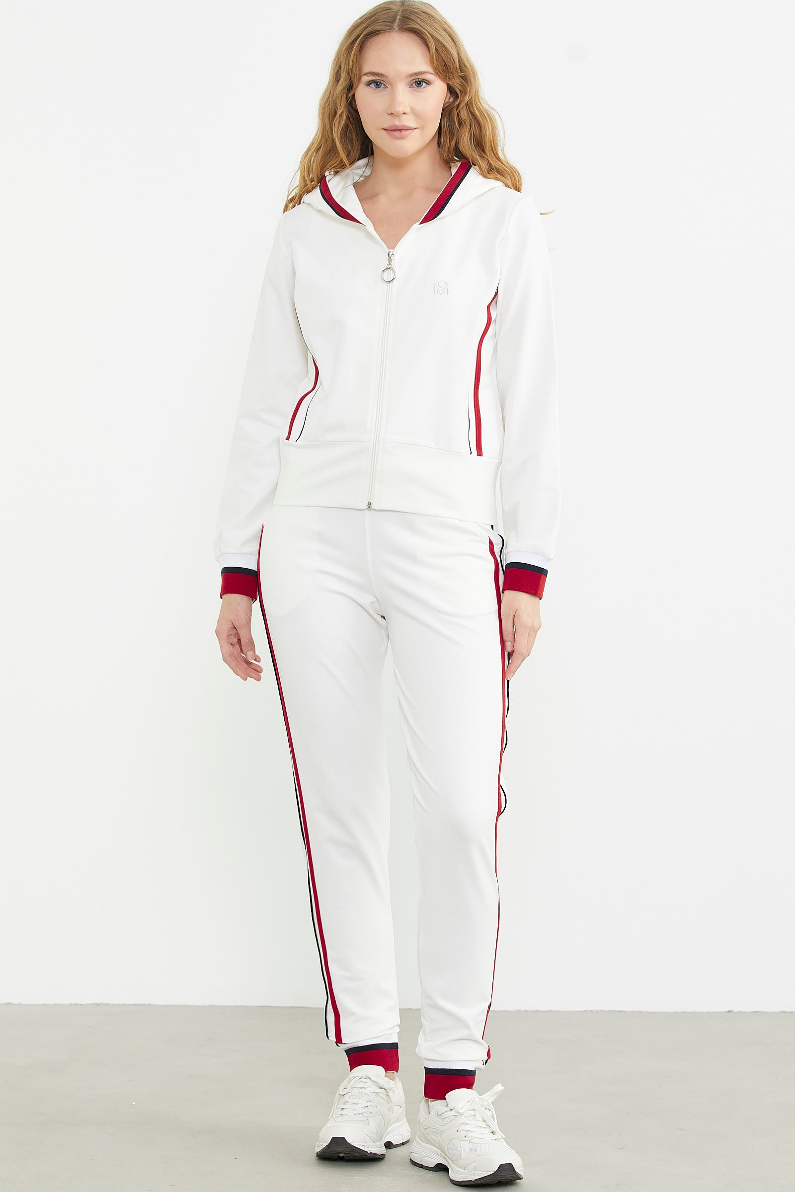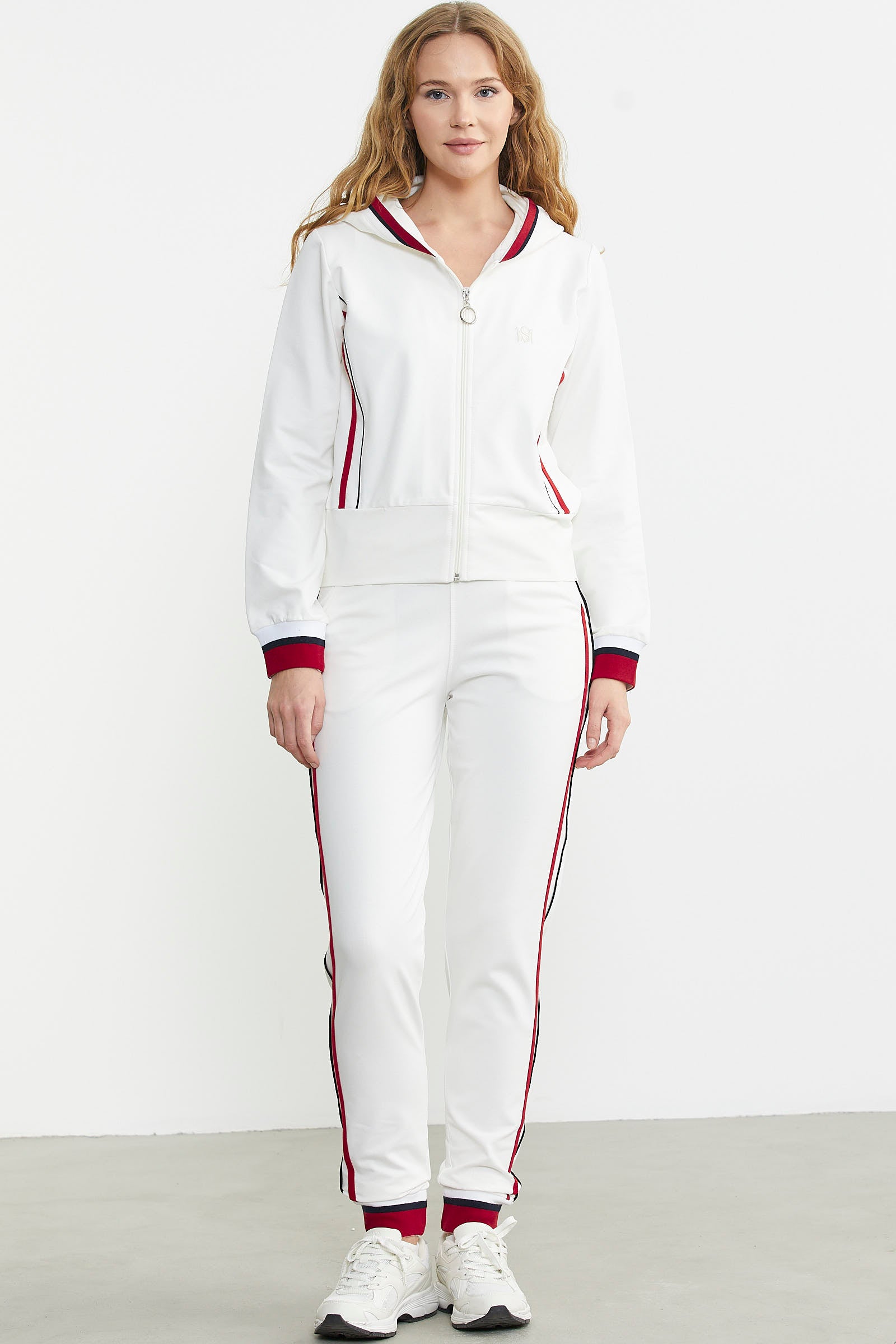 Colorful Piping Detailed Jogger Tracksuit - Ecru