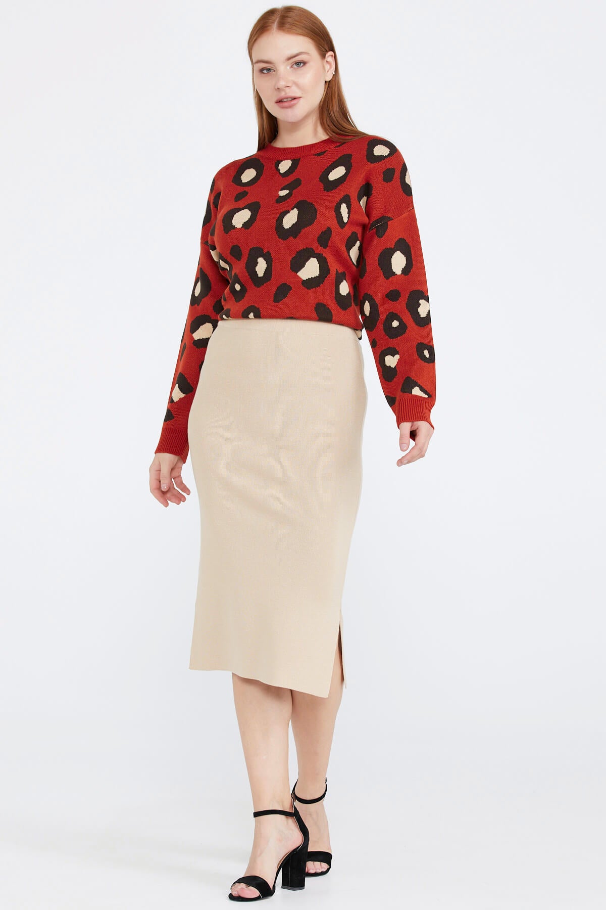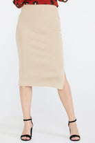 Women's Slit Knitwear Skirt - Kamel