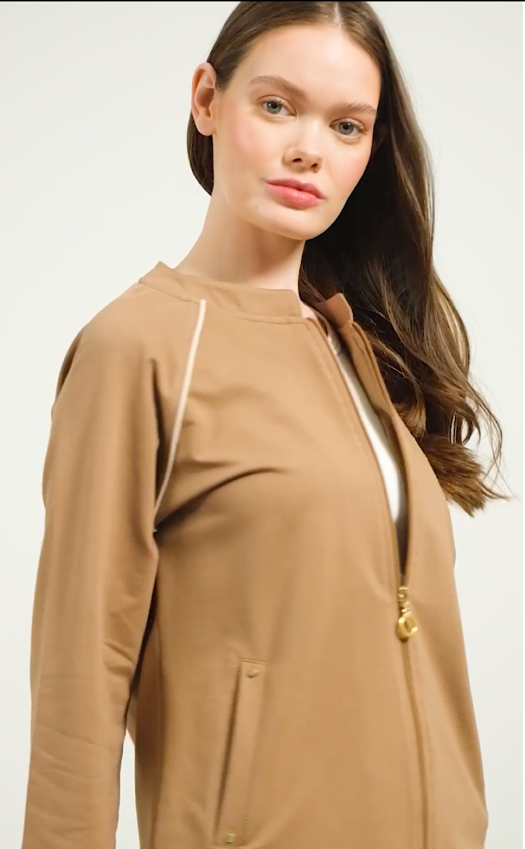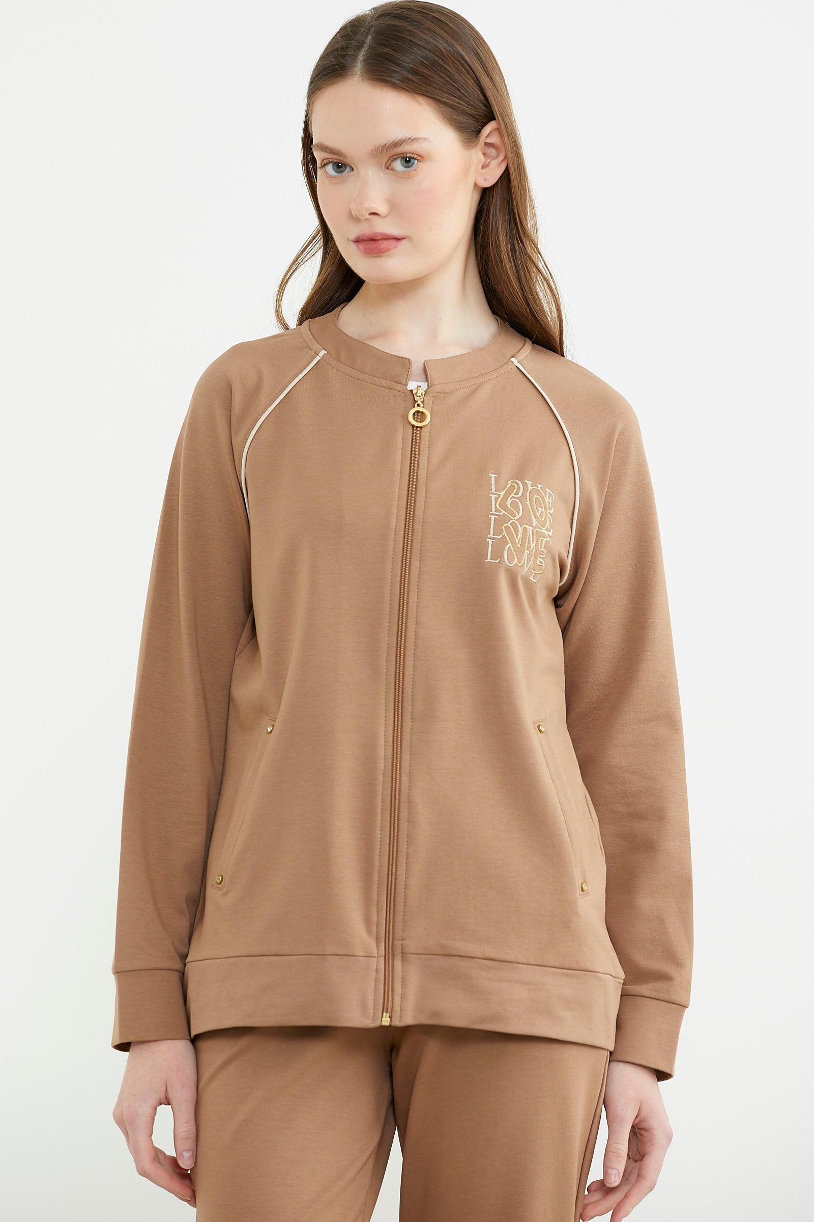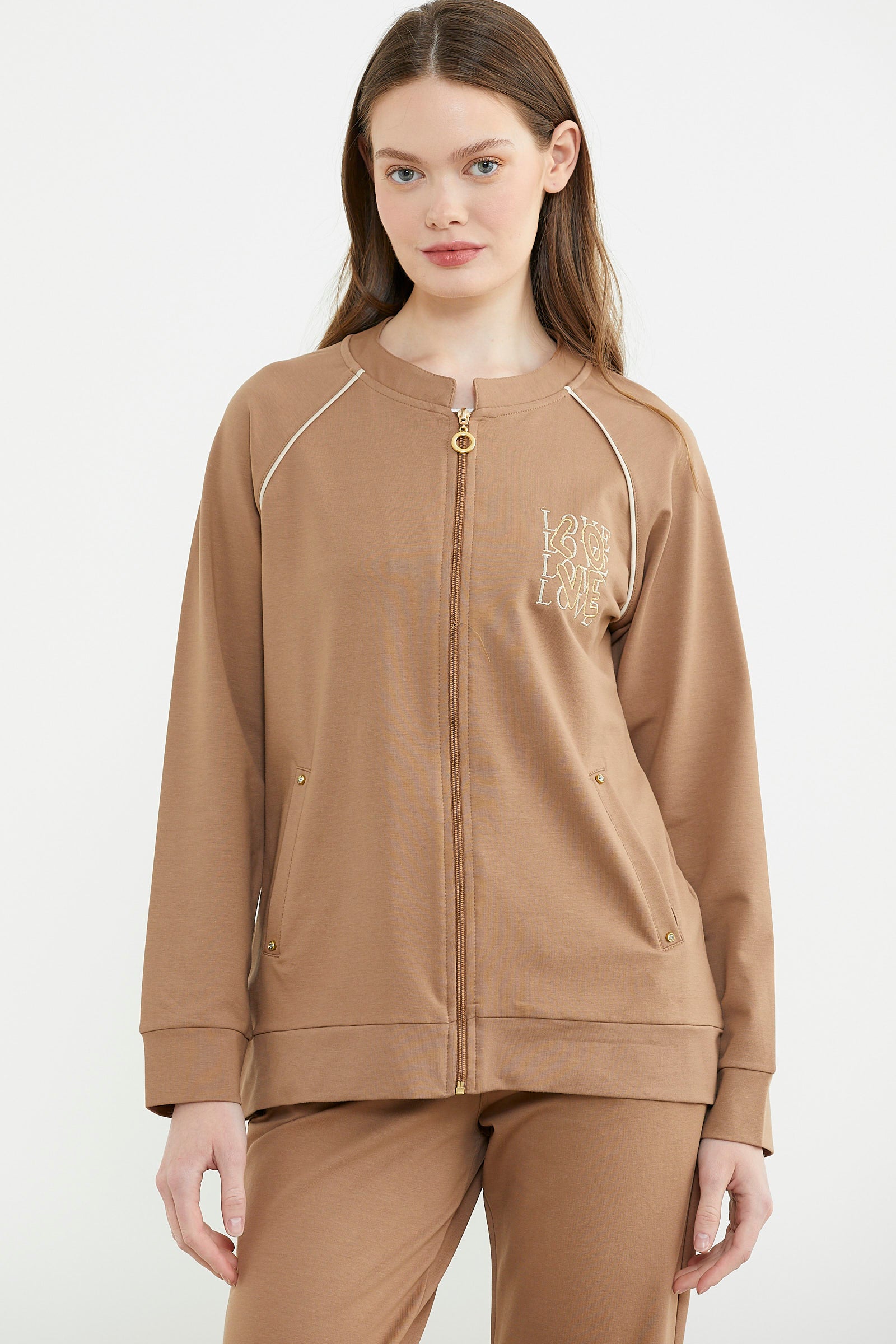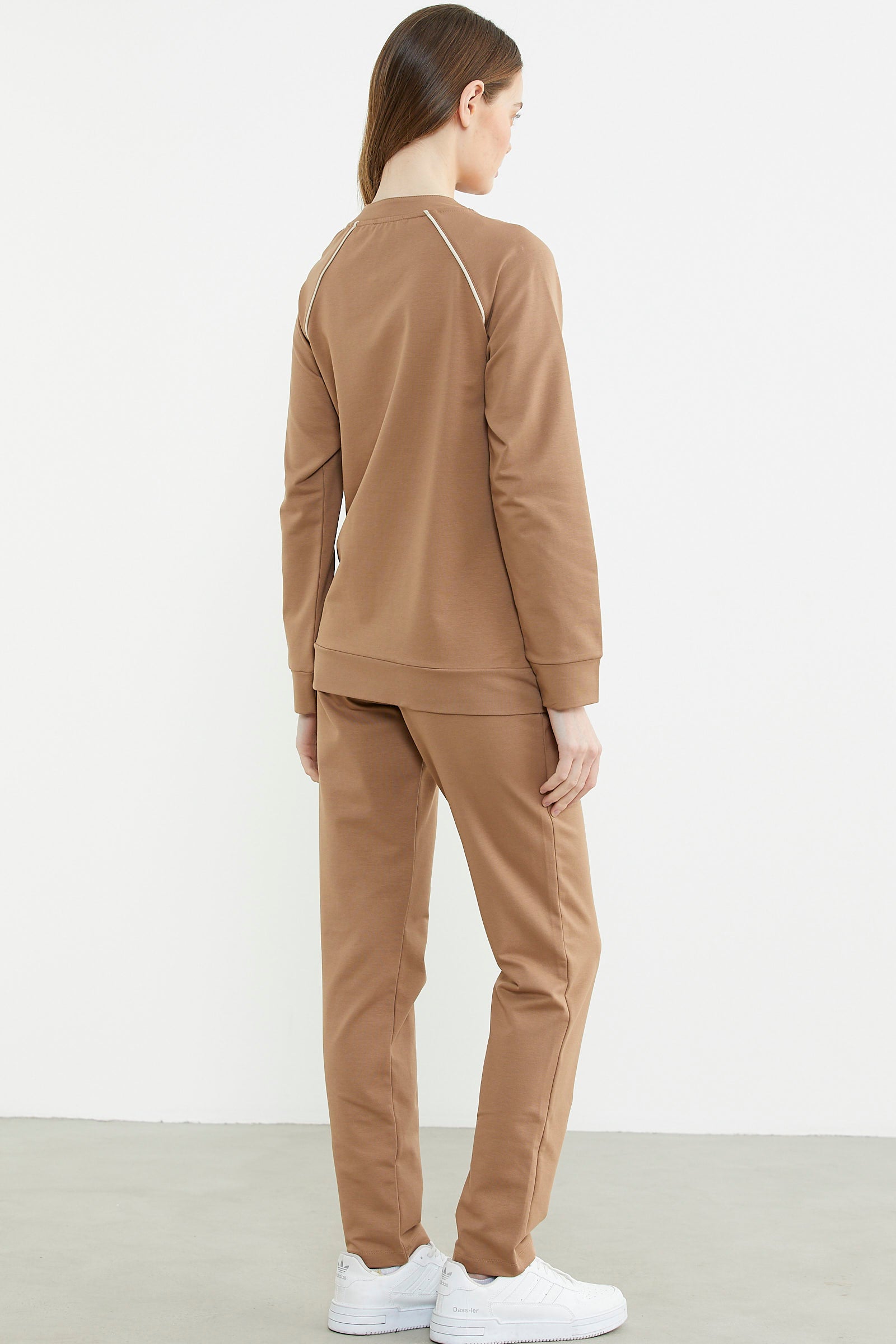 Biye Detaylı Fermuarlı Eşofman Takım - Kamel