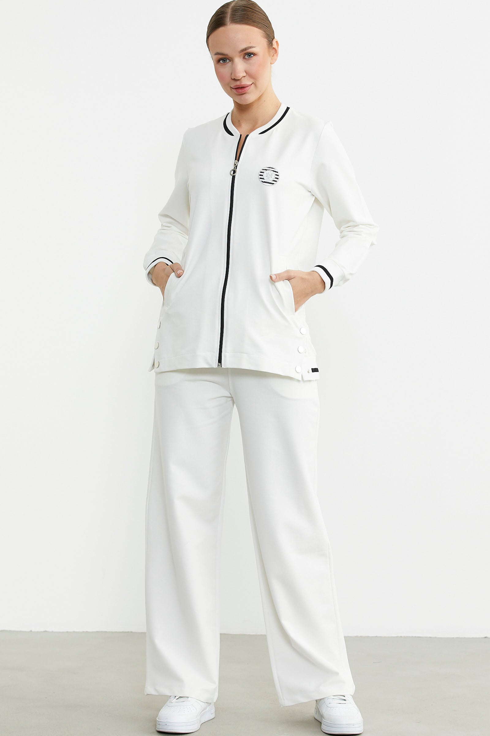 Çıtçıt Detaylı Ribanalı Eşofman Takım - Ekru