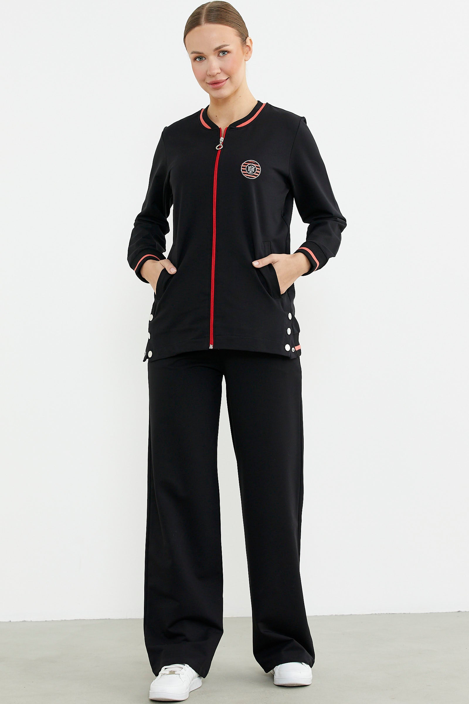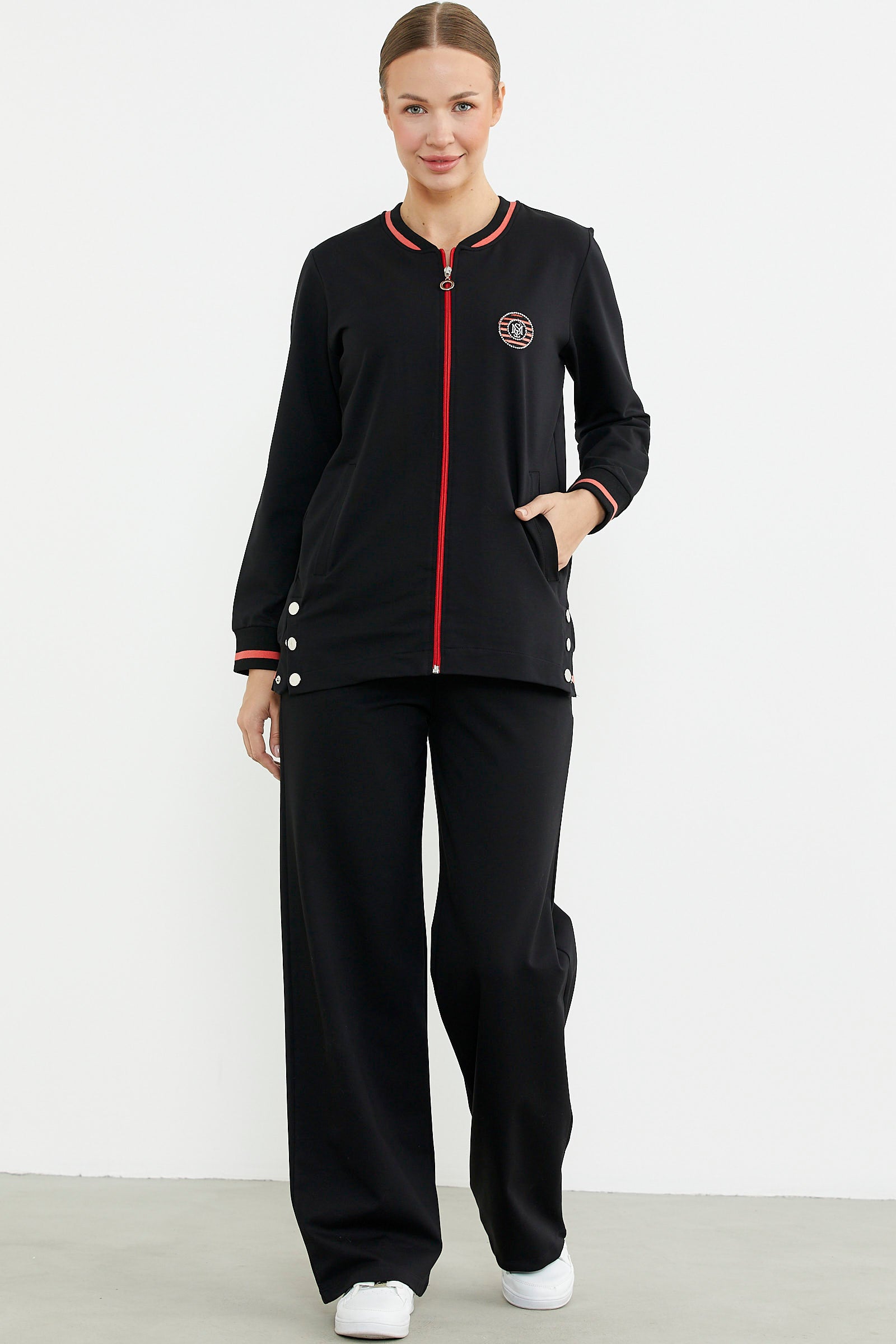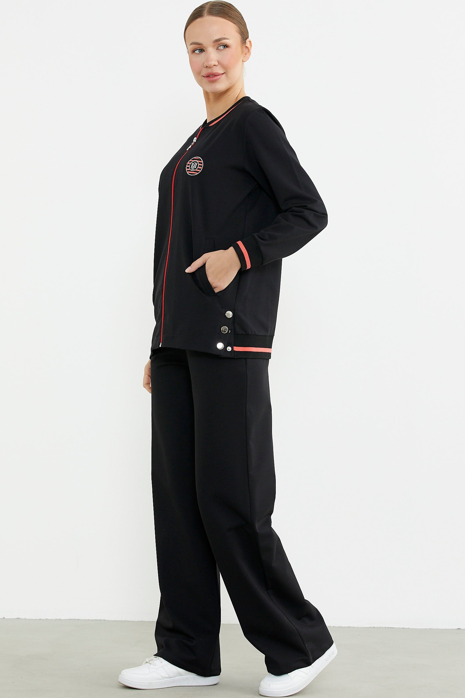 Çıtçıt Detaylı Ribanalı Eşofman Takım - Siyah