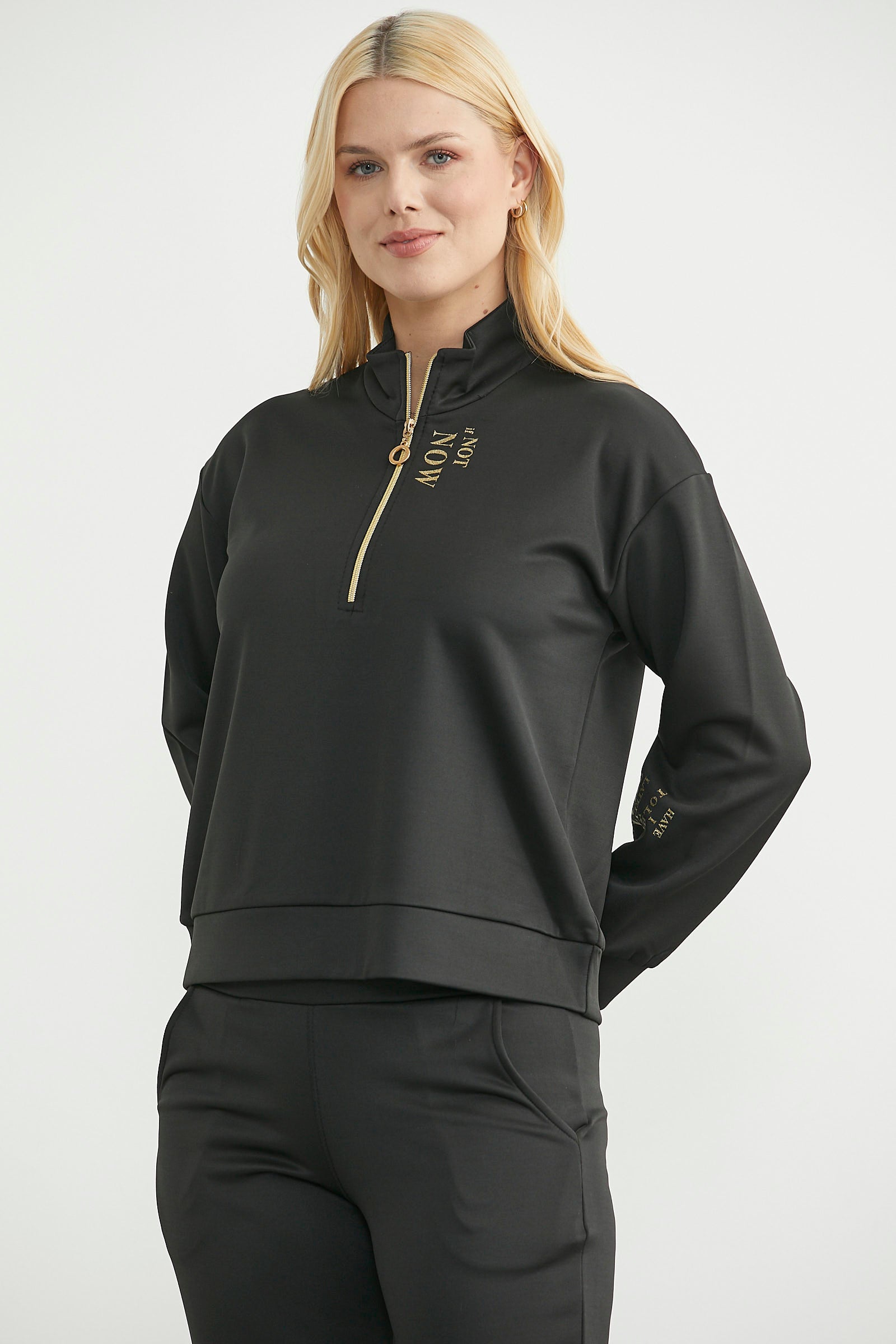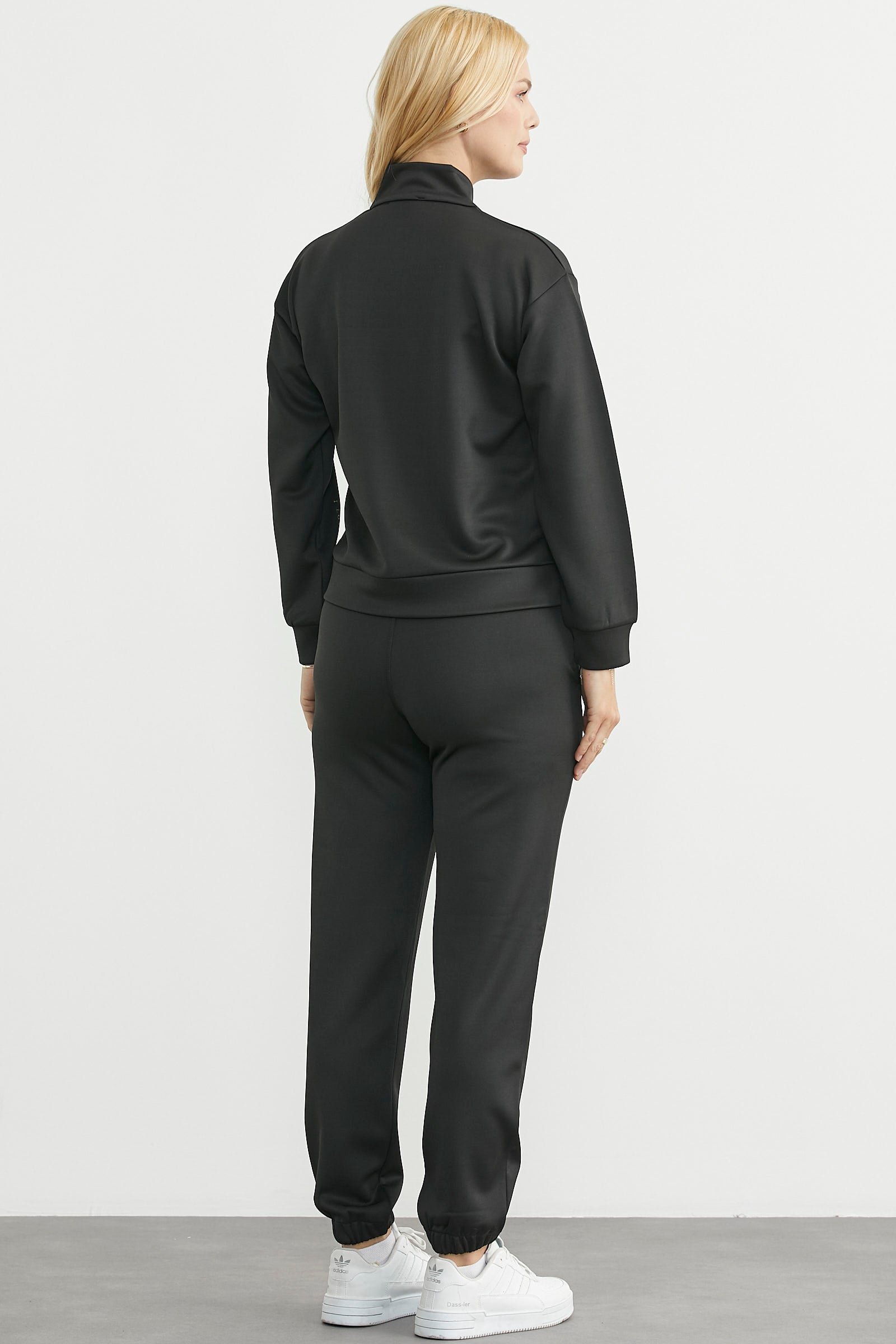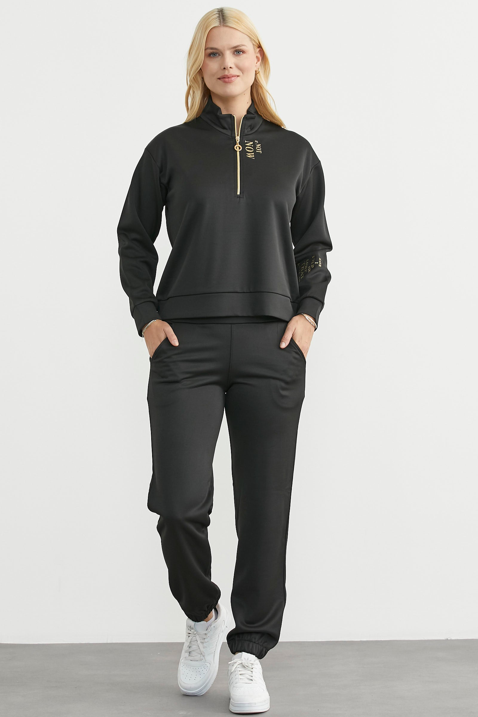 Dik Yaka Yarım Fermuarlı Eşofman Takım - Siyah