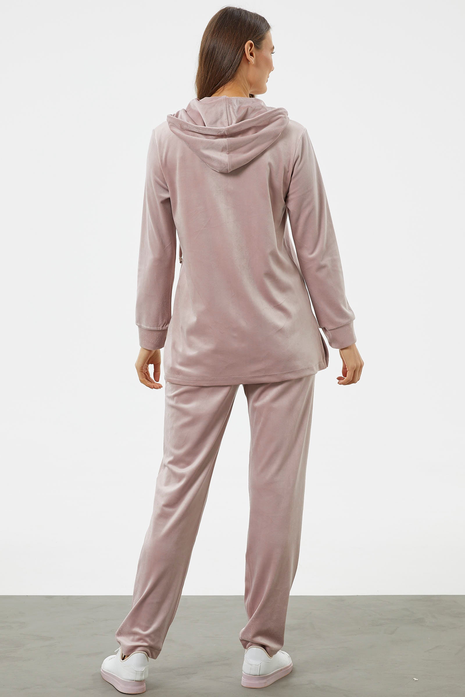 Full Zipper Velvet Stone Tracksuit - Light Pink