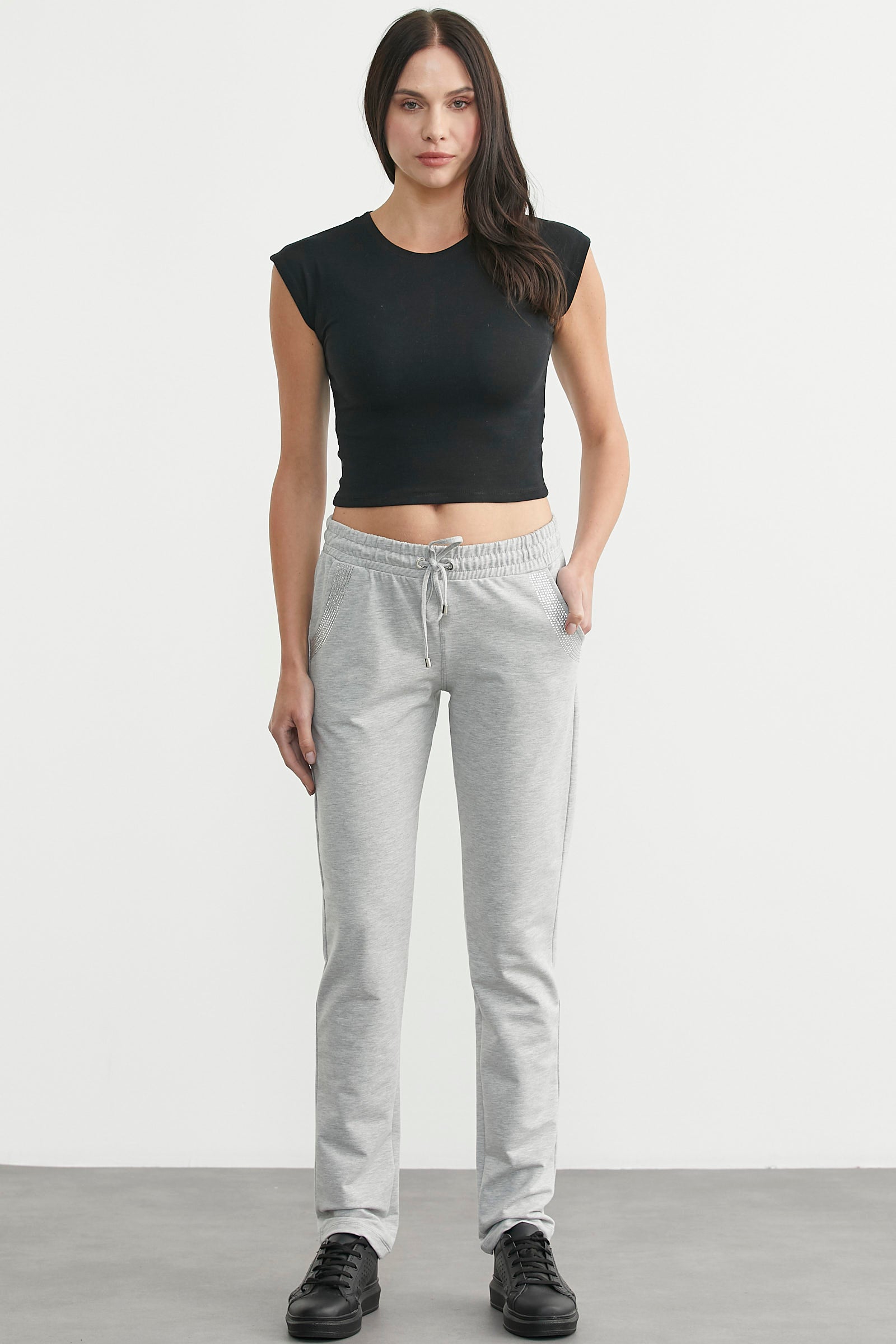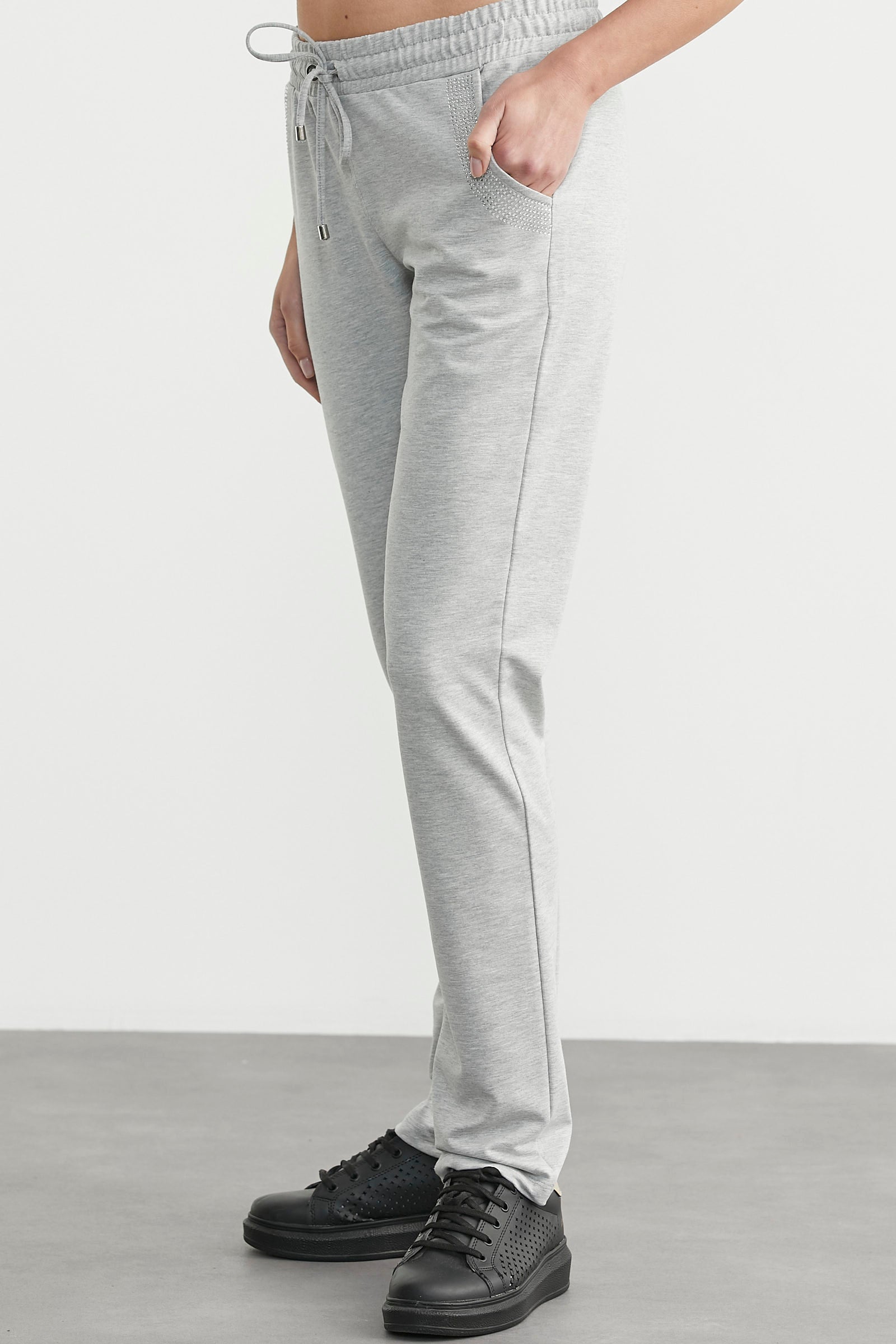 Taş Detaylı Cepli Eşofman Altı - Gri