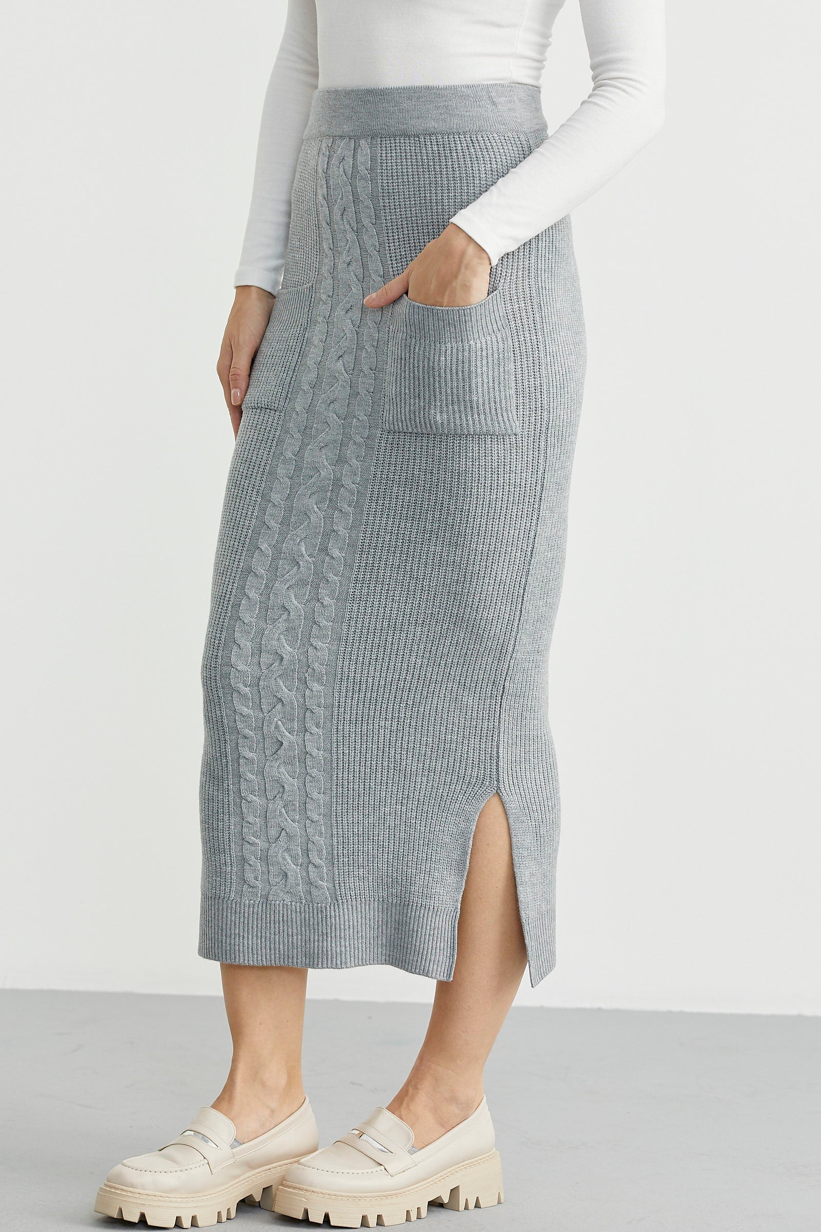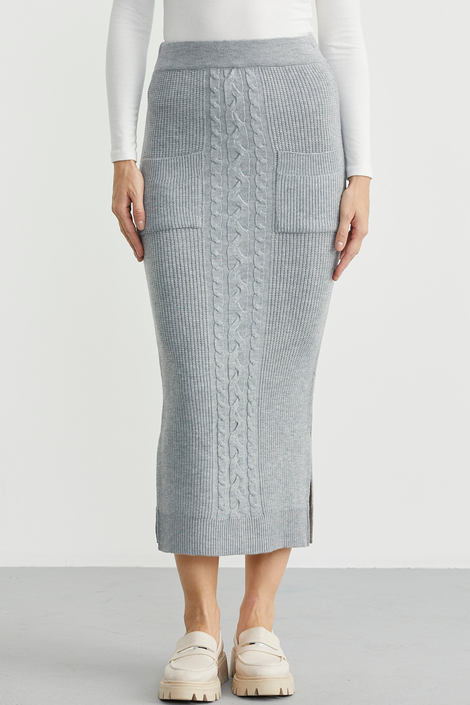 Long Knit Skirt with Pocket Detail - Grey