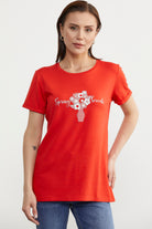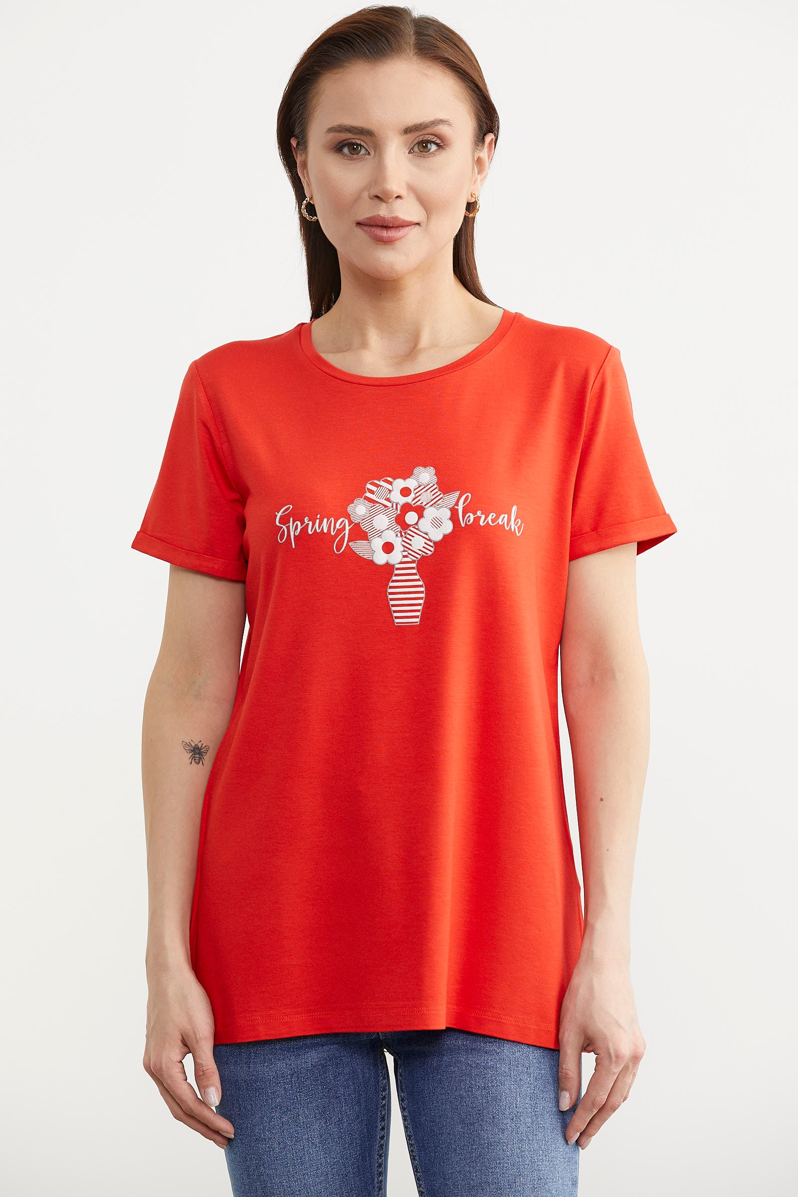 Designed as a crew neck, the t-shirt provides comfort with its soft texture and offers ease of combination.