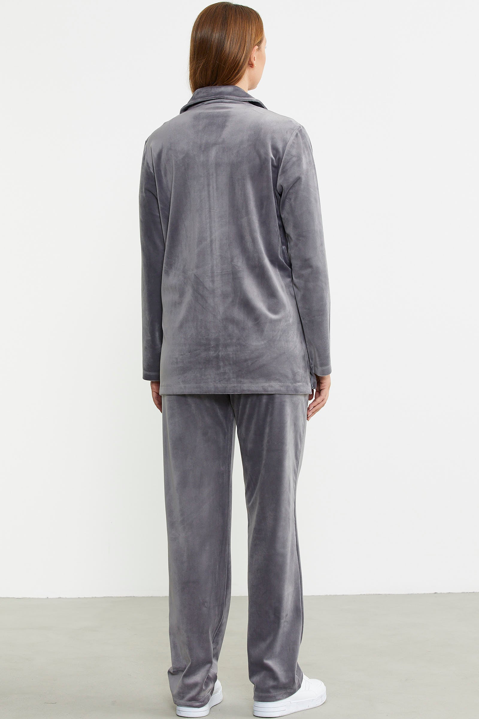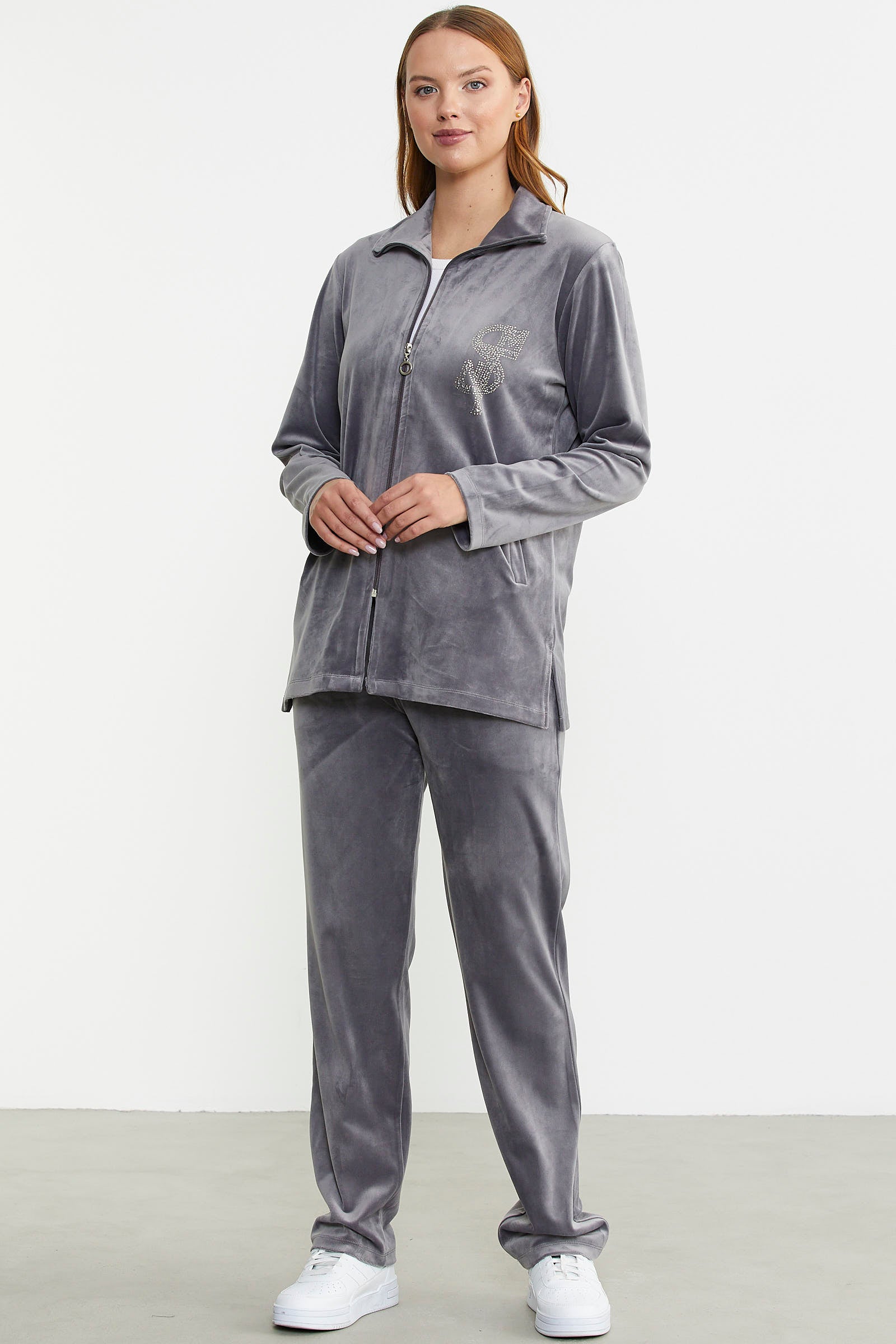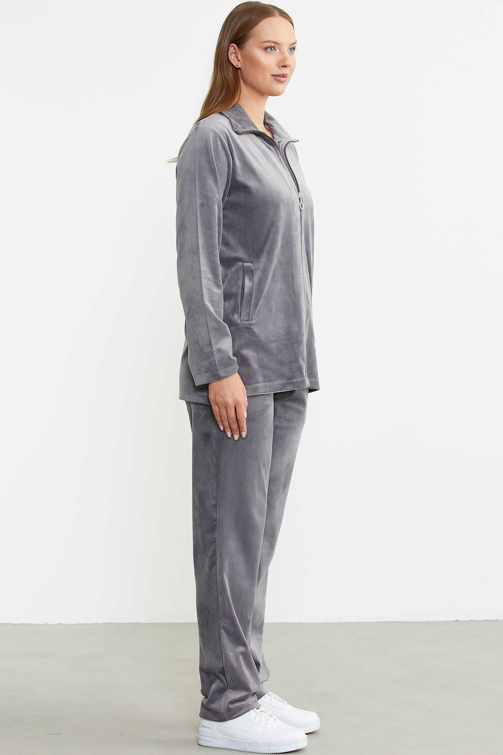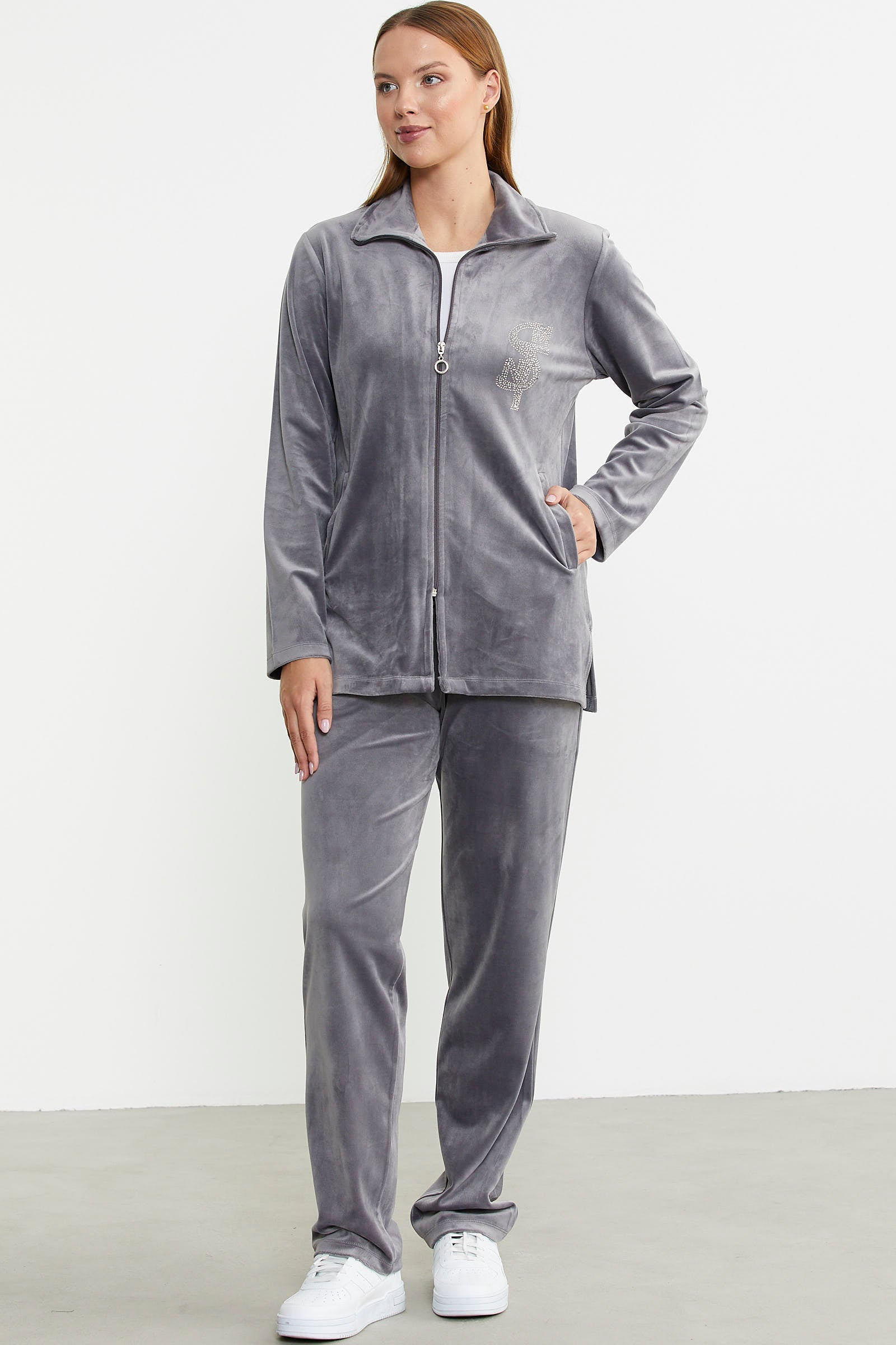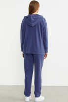 Oversize polar fleece tracksuit with hood provides warm and comfortable use on cold winter days.