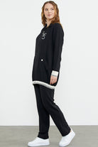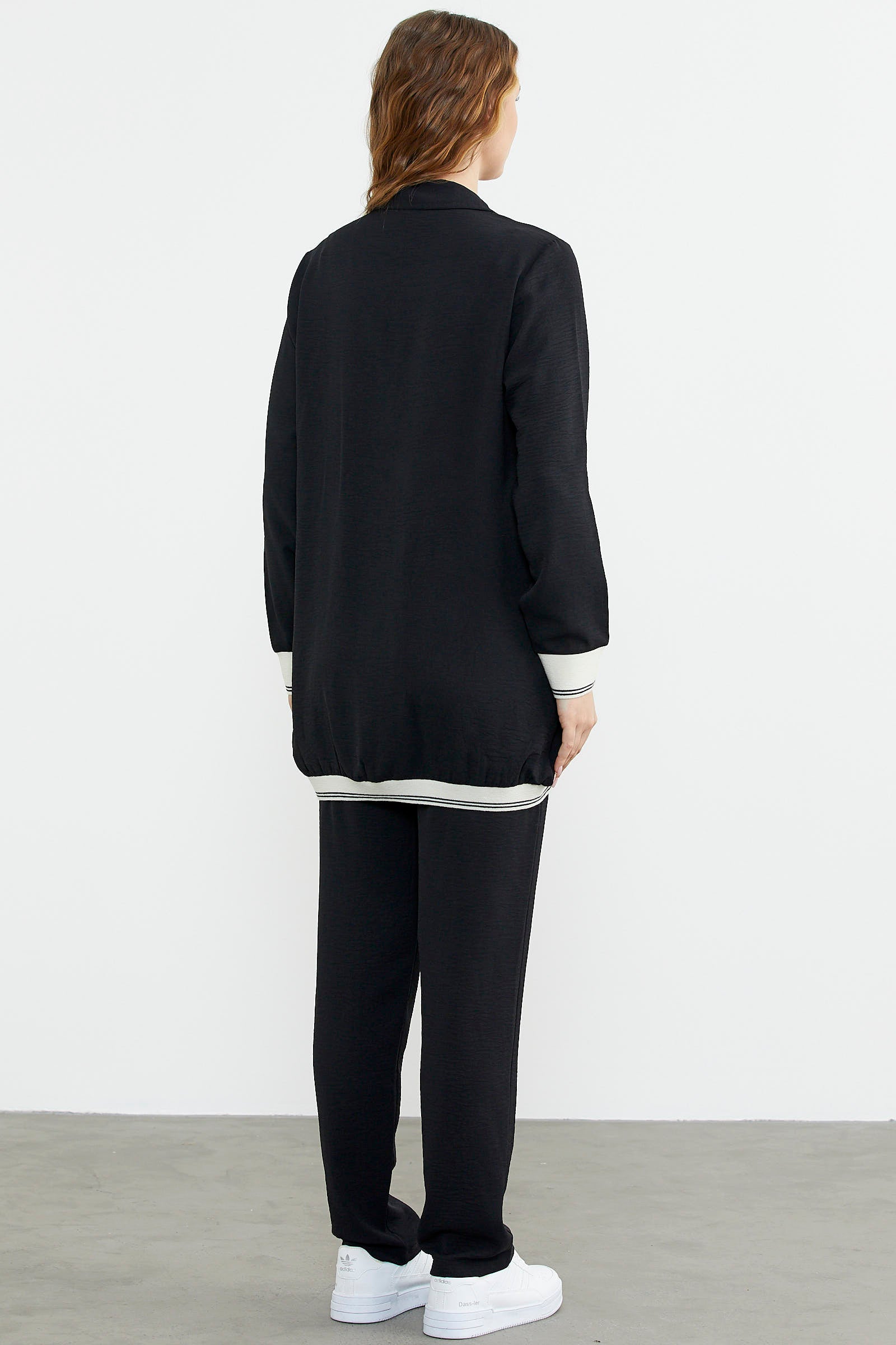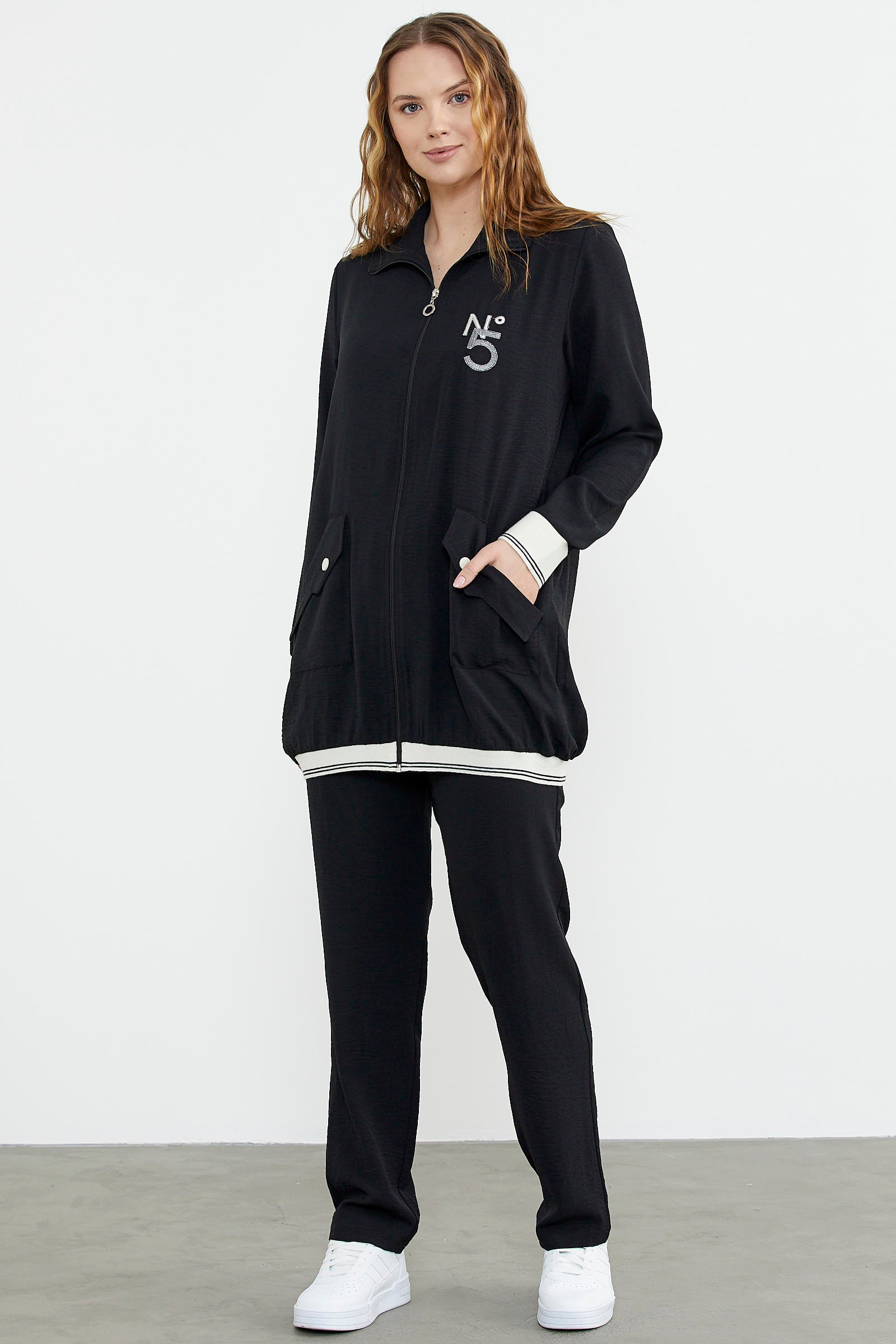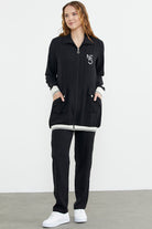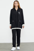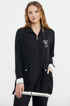 Shawl Collar Zippered Crepe Suit - Black