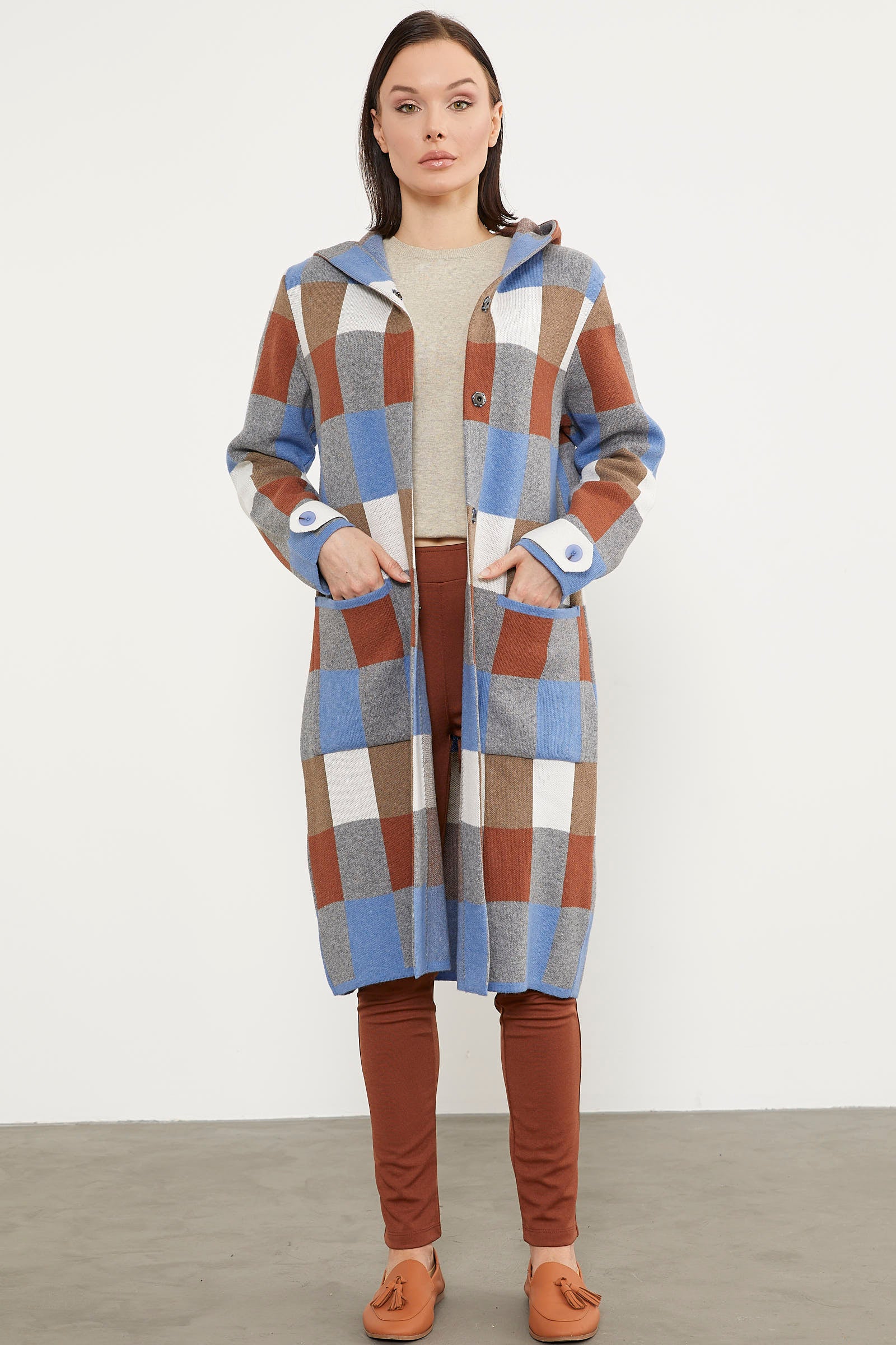Do you want to capture your life energy despite the cold seasons? You can capture a lively look with a long cardigan with different colors and block patterns and create a facade against cold weather with its warm texture. The hooded cardigan with snaps in the front, two large side pockets provides ease of use for you. It has a subtle touch thanks to the button details on the cuffs.