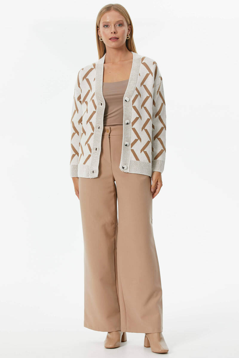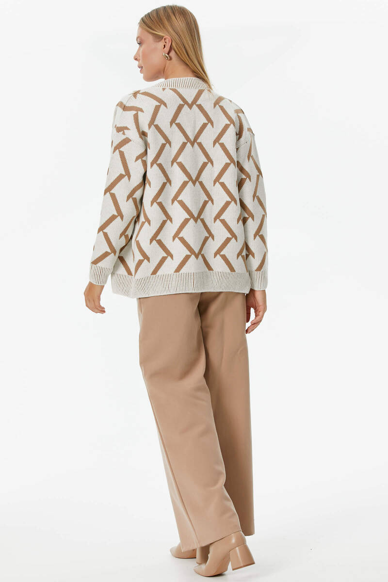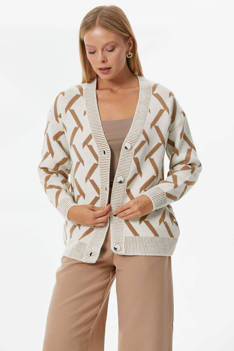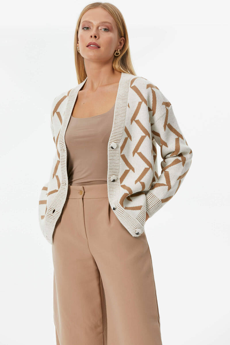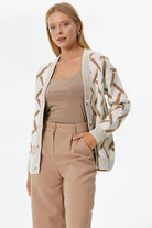 Geometric Patterned Knitwear Cardigan - Bone - Camel