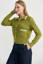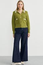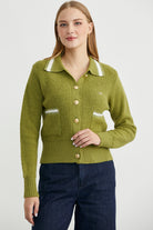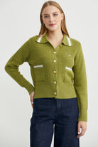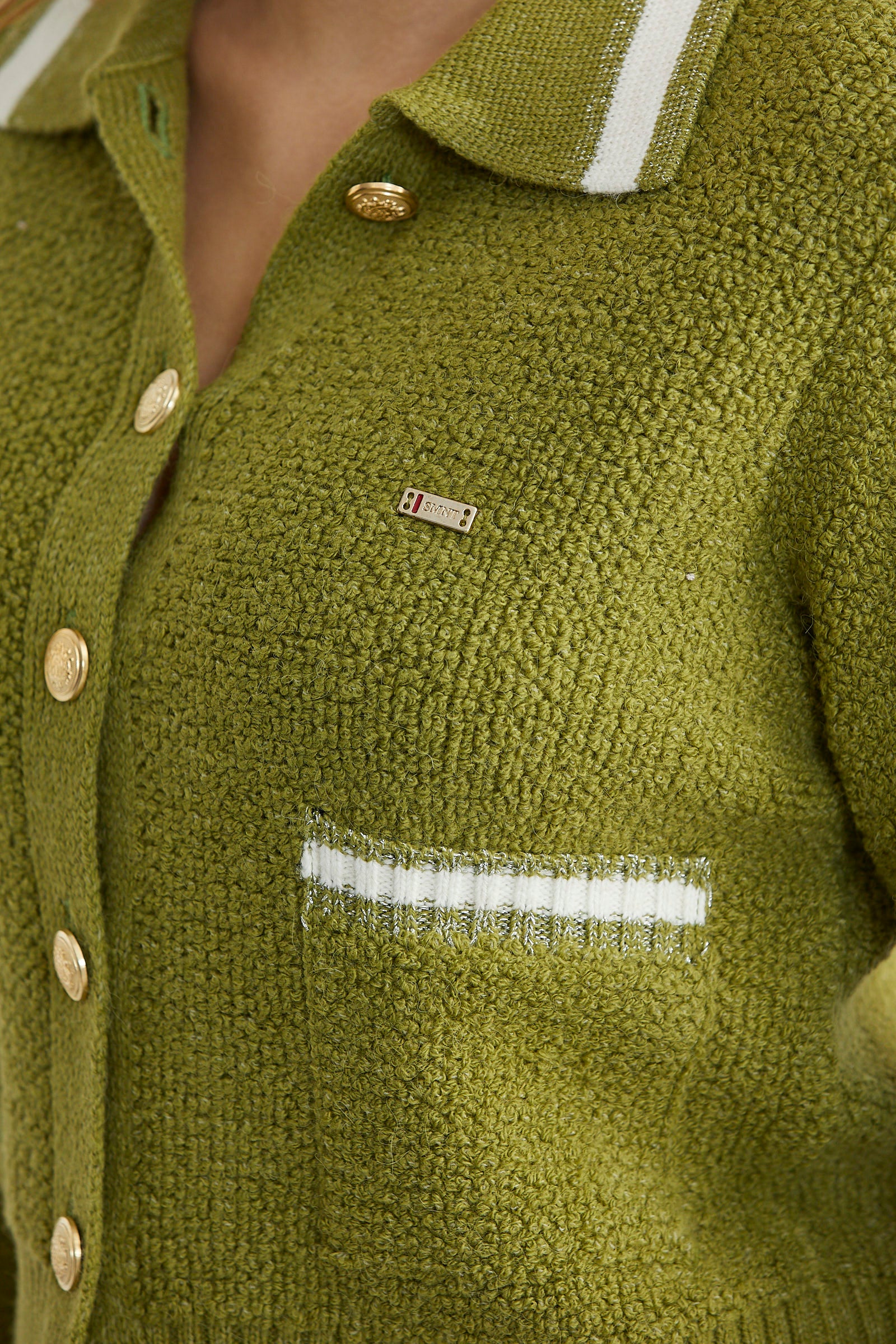 Polo Yaka Düğmeli Triko Hırka - Yeşil