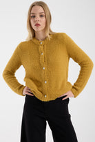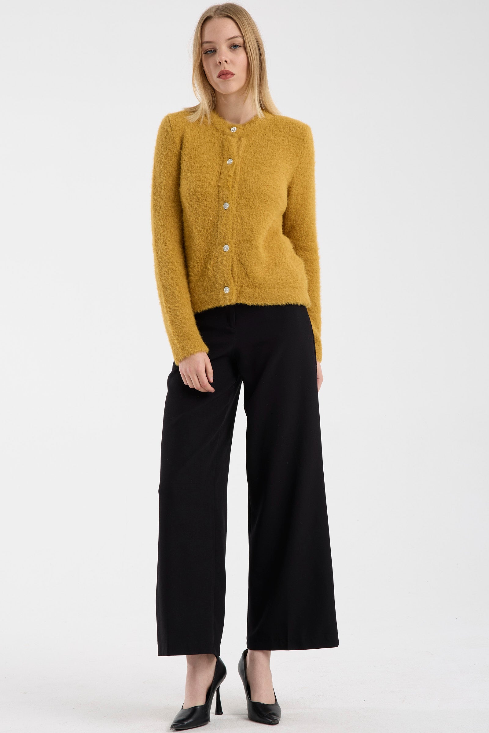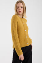 Sakallı Yumoş Düğmeli Triko Hırka - Hardal