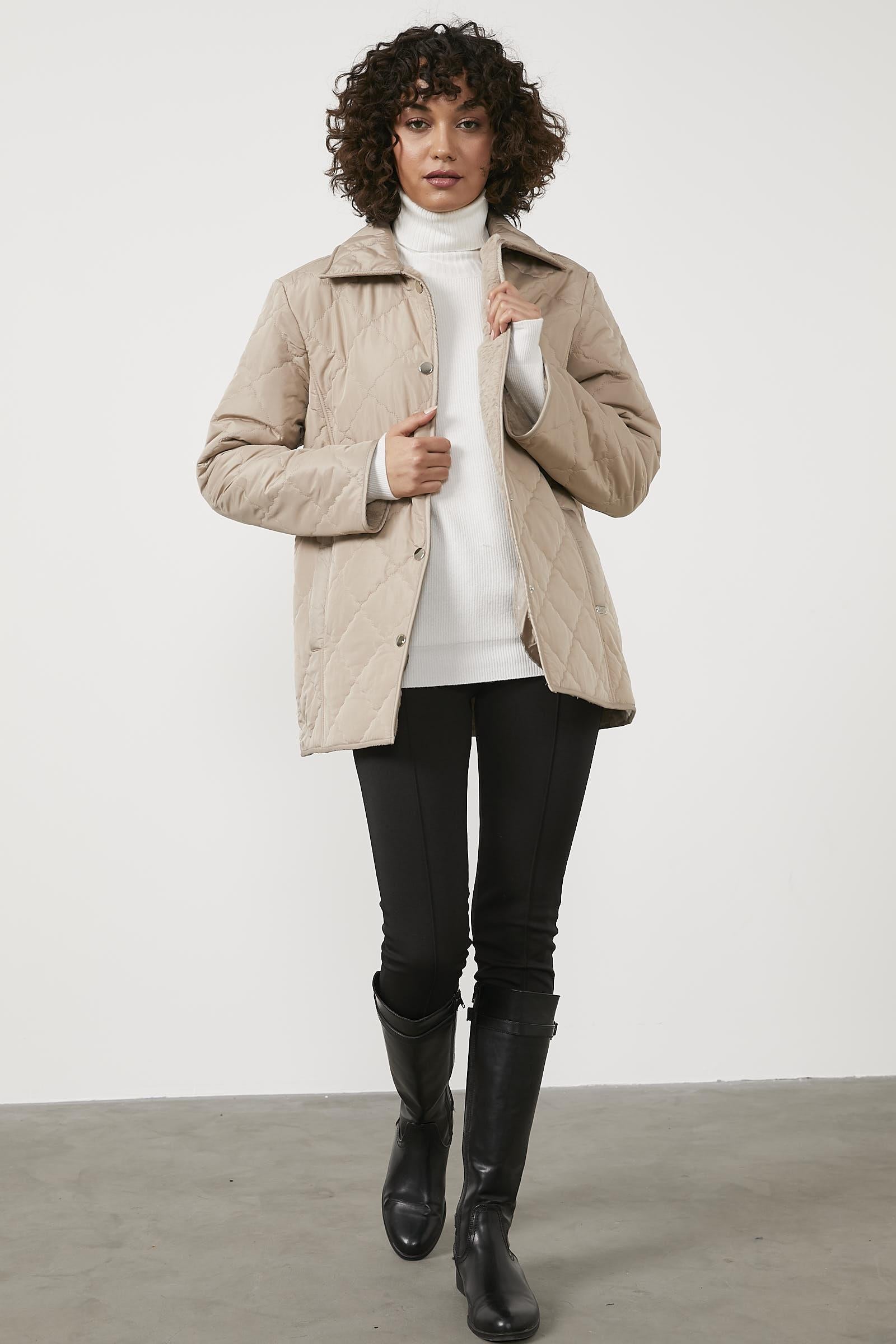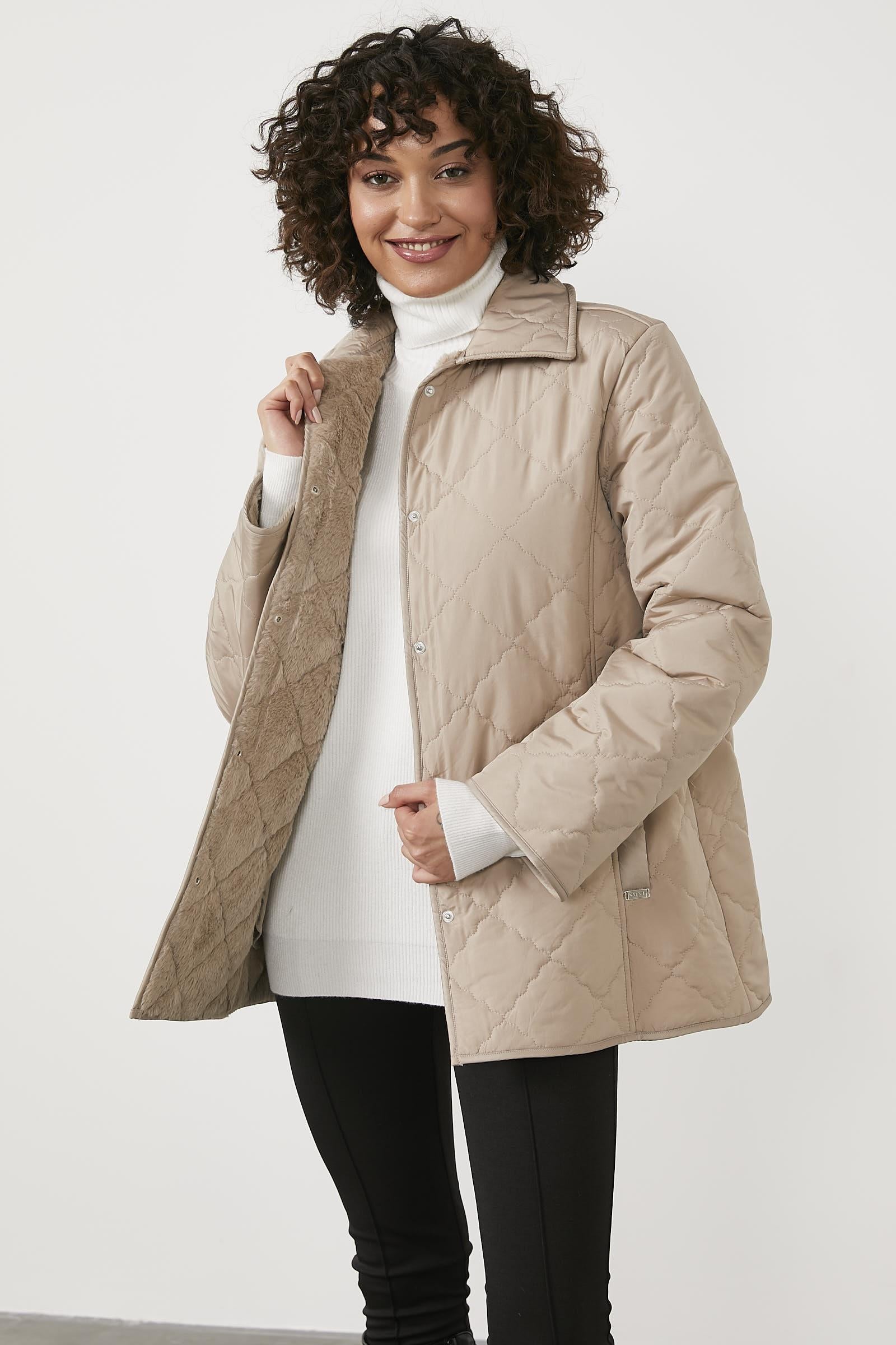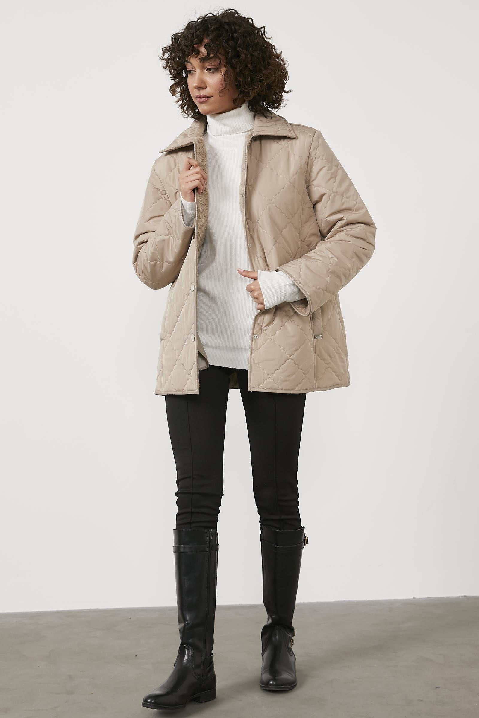 Quilted Comfortable In-Mould Plush Coat - Beige