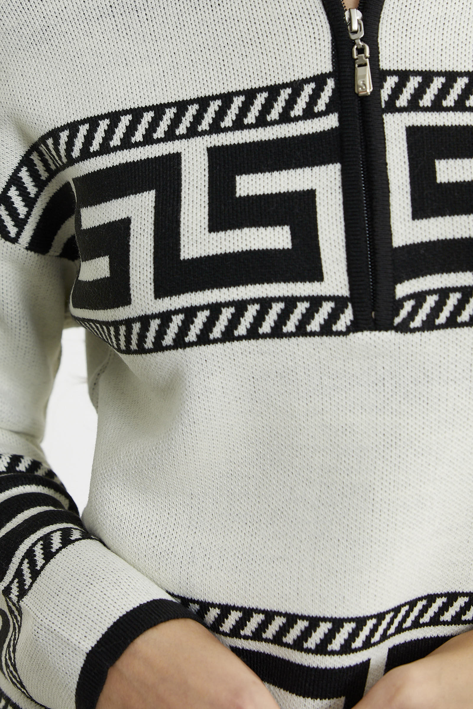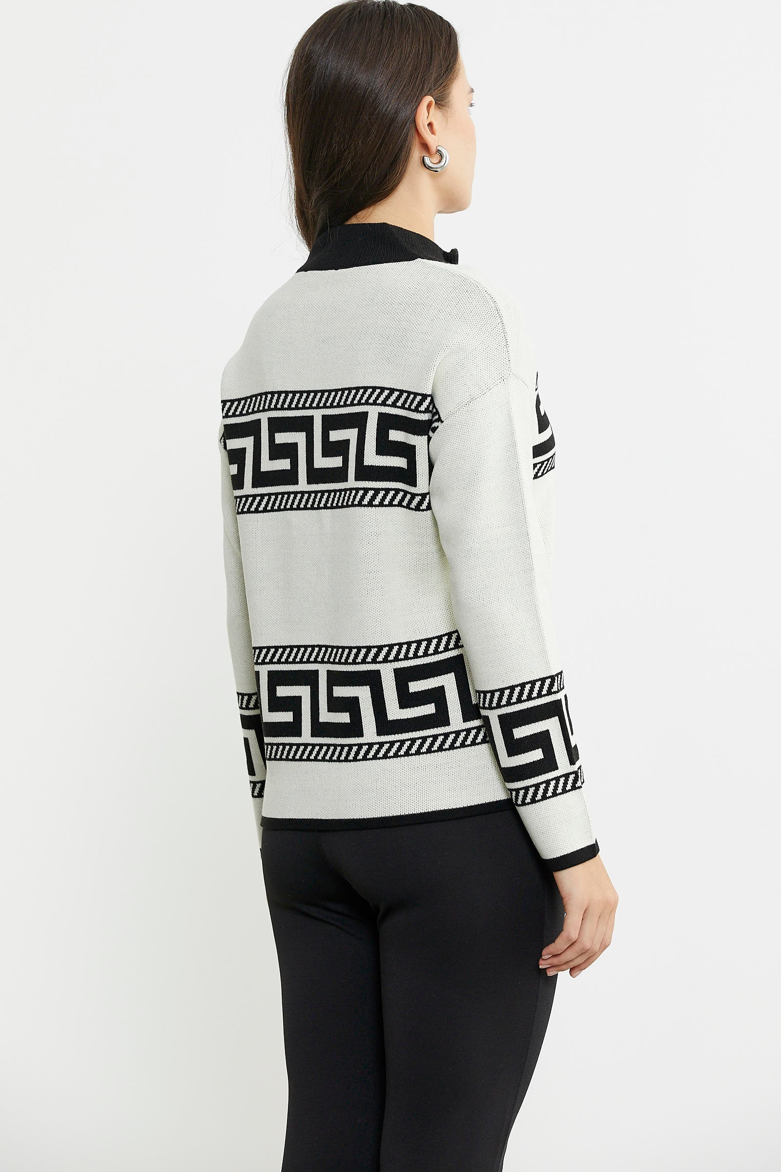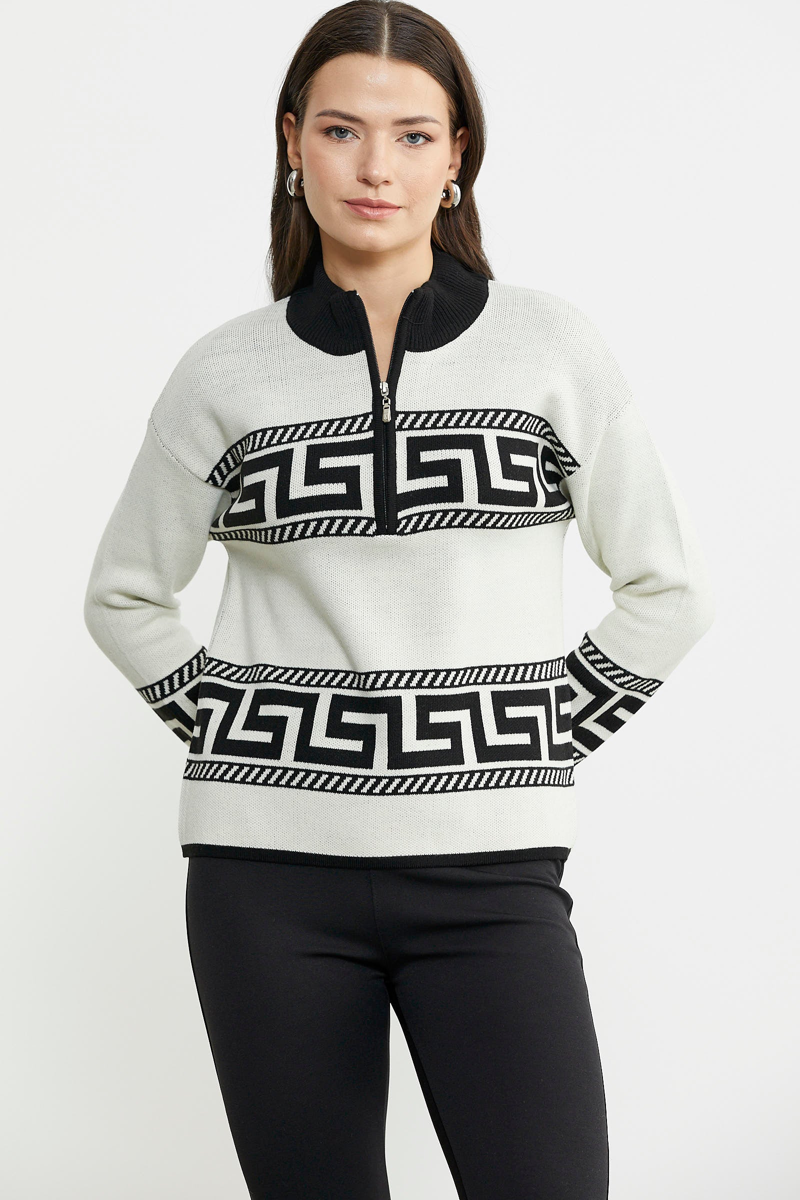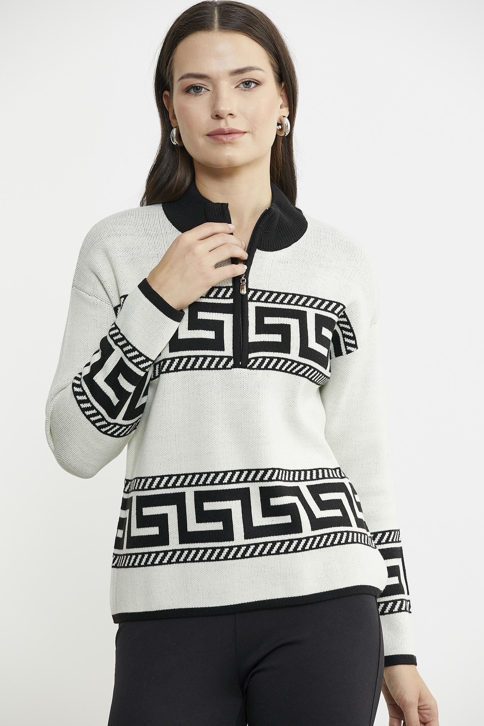 Block Patterned Stand Collar Knitwear Sweater - Bone