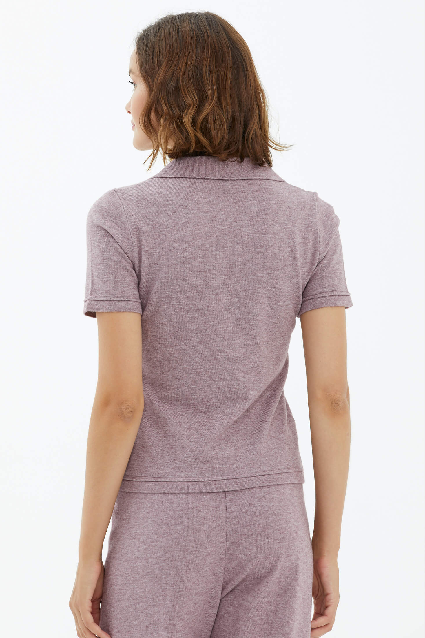 Polo Neck Short Sleeve Knitwear Sweater - Rose