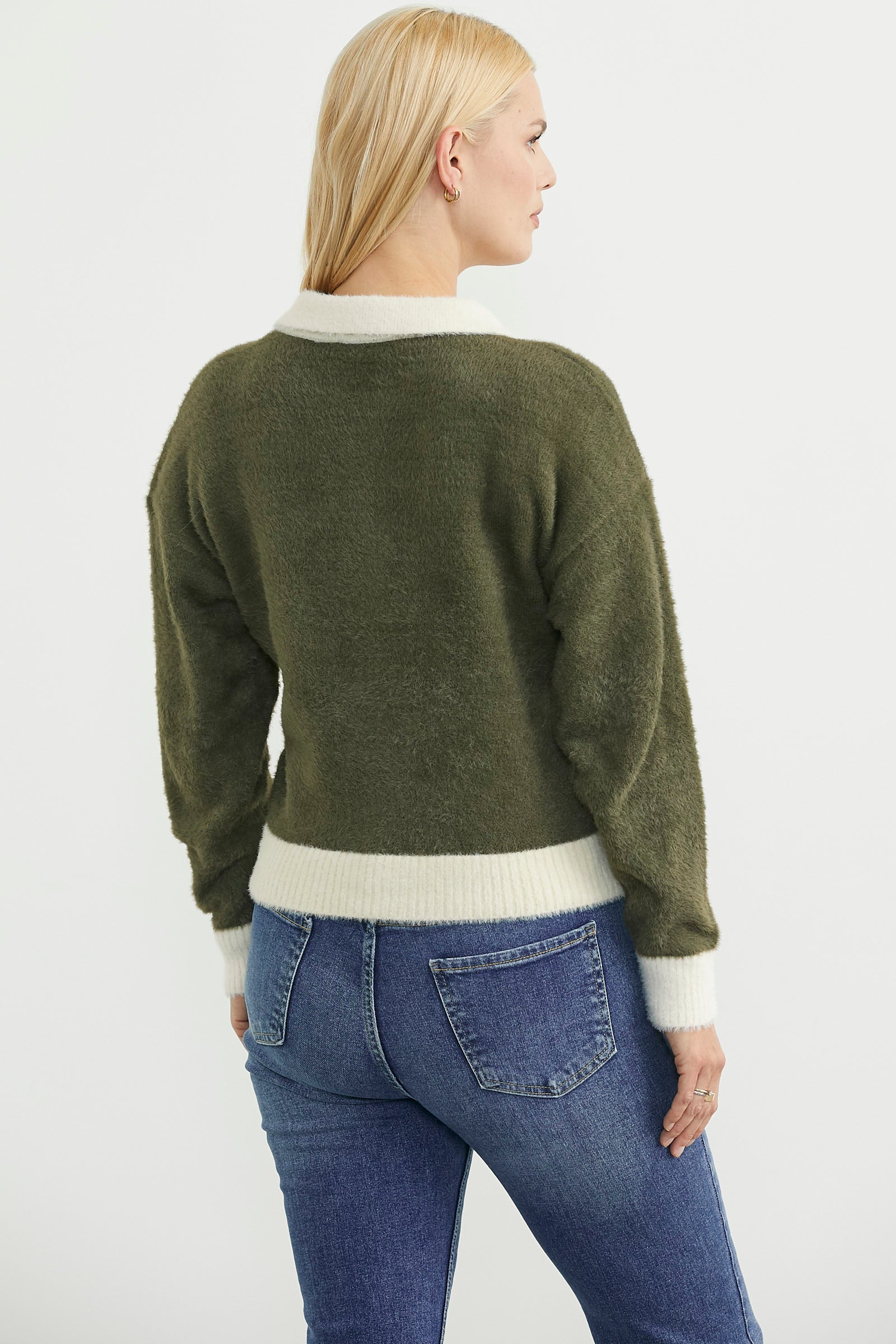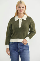 Polo Yaka Renk Geçişli Triko Kazak - Haki