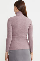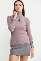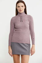 Full Turtleneck Buttoned Knit Sweater - Rose