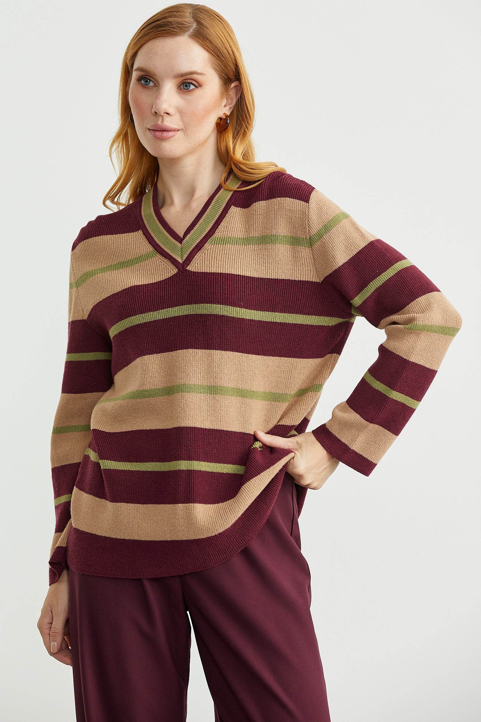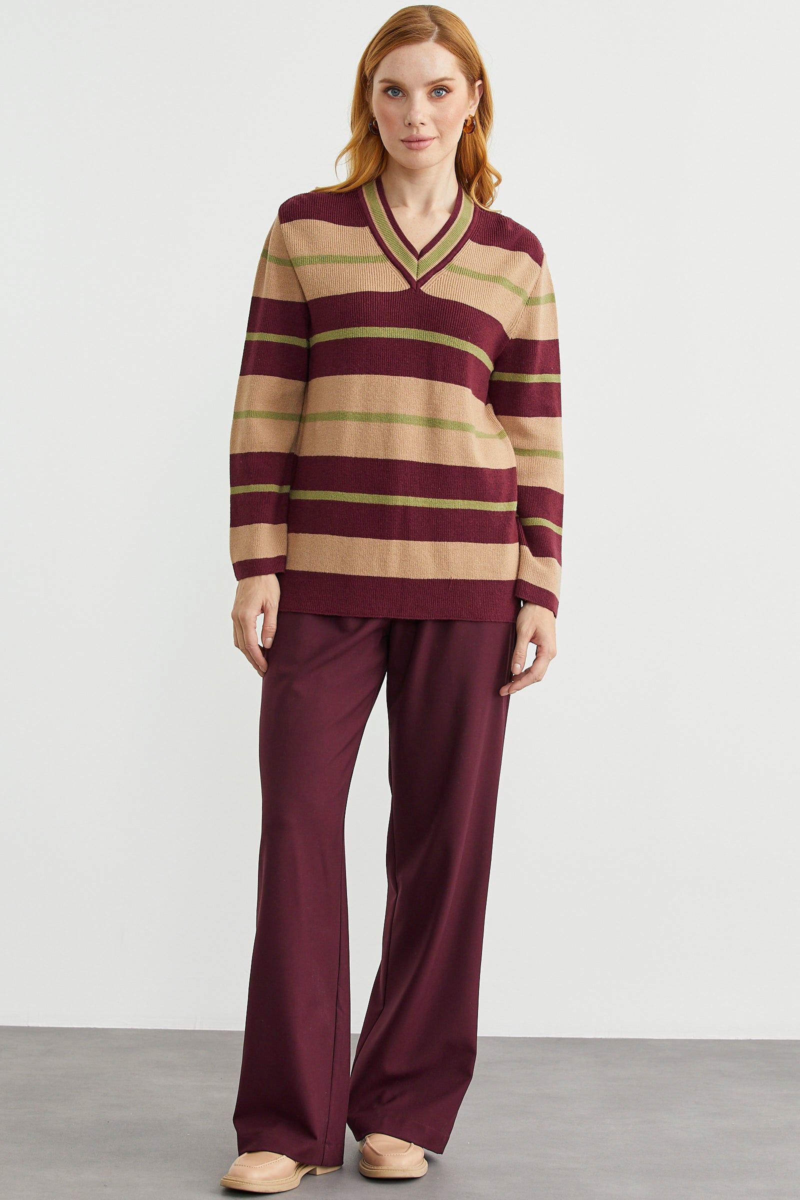 Although plain colors are the frequently worn options of women's knitwear sweater models, there are also patterned alternatives available to those who want a more eye-catching style. Intricate geometric prints, stripes, leaf and flower patterns are some of the options you can access. One of the design details that add movement to patterned models is color transitions. Using harmonious tones in the same design gives knitwear a more eye-catching appearance.