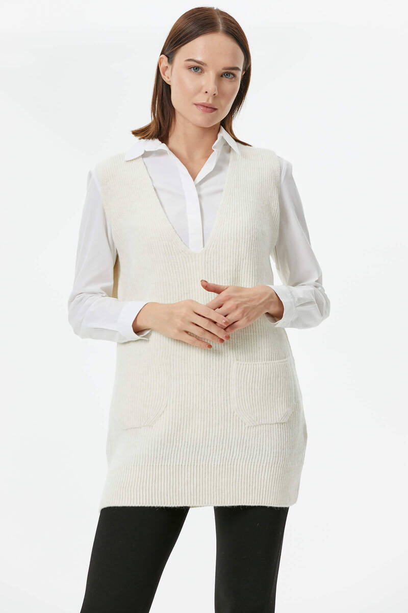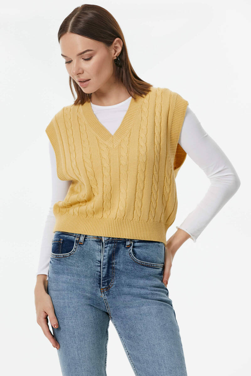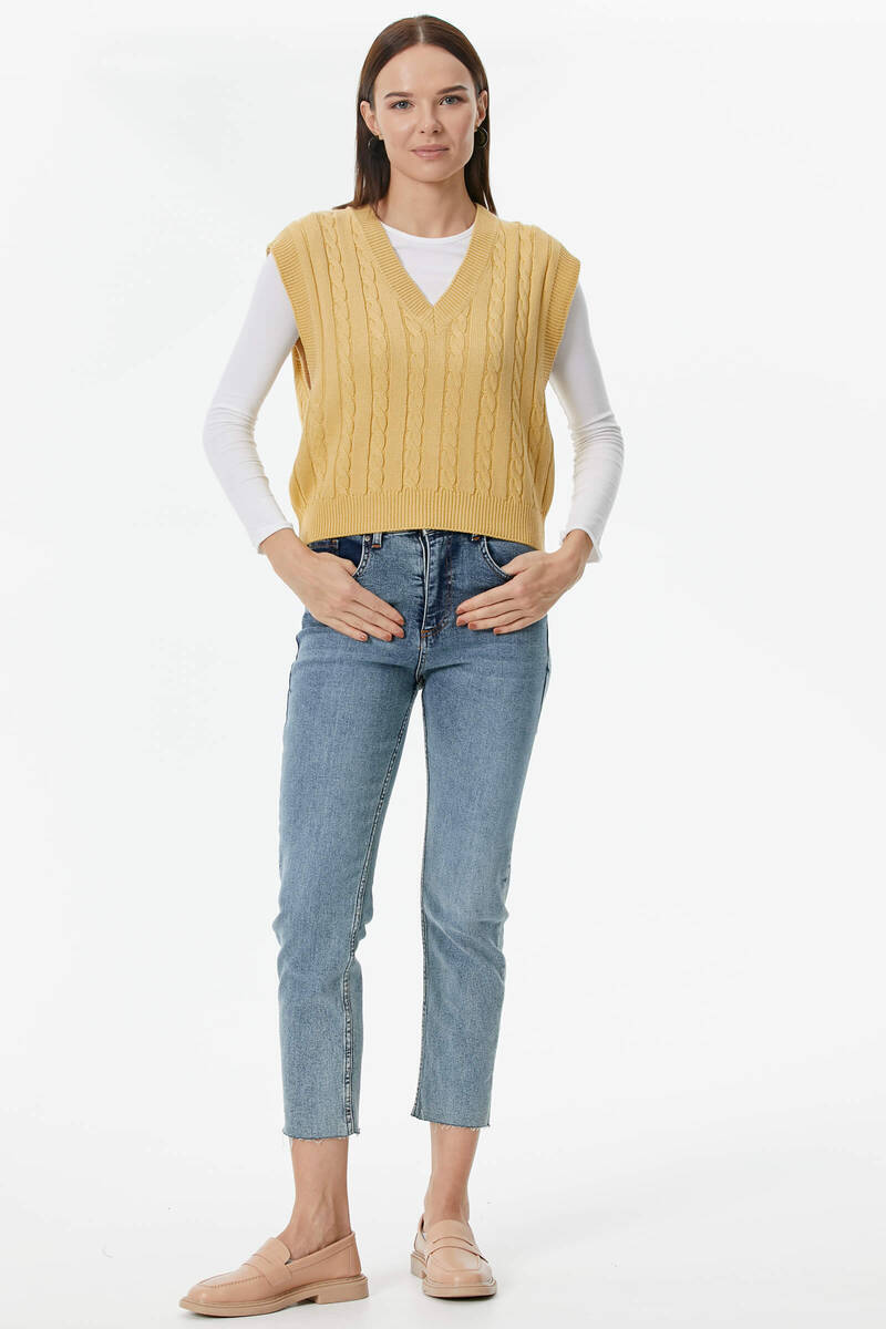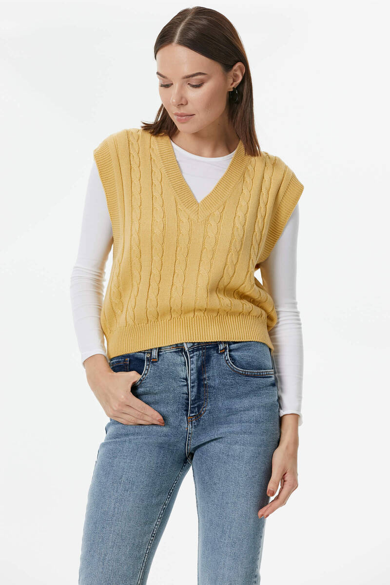 One of the new and attractive products in Sementa 's collection is the suspender knit sweater design that shines like a pearl among women's knit sweater models. This design, which is offered to your liking in three different color options, beige, tile and black, deserves your attention!
