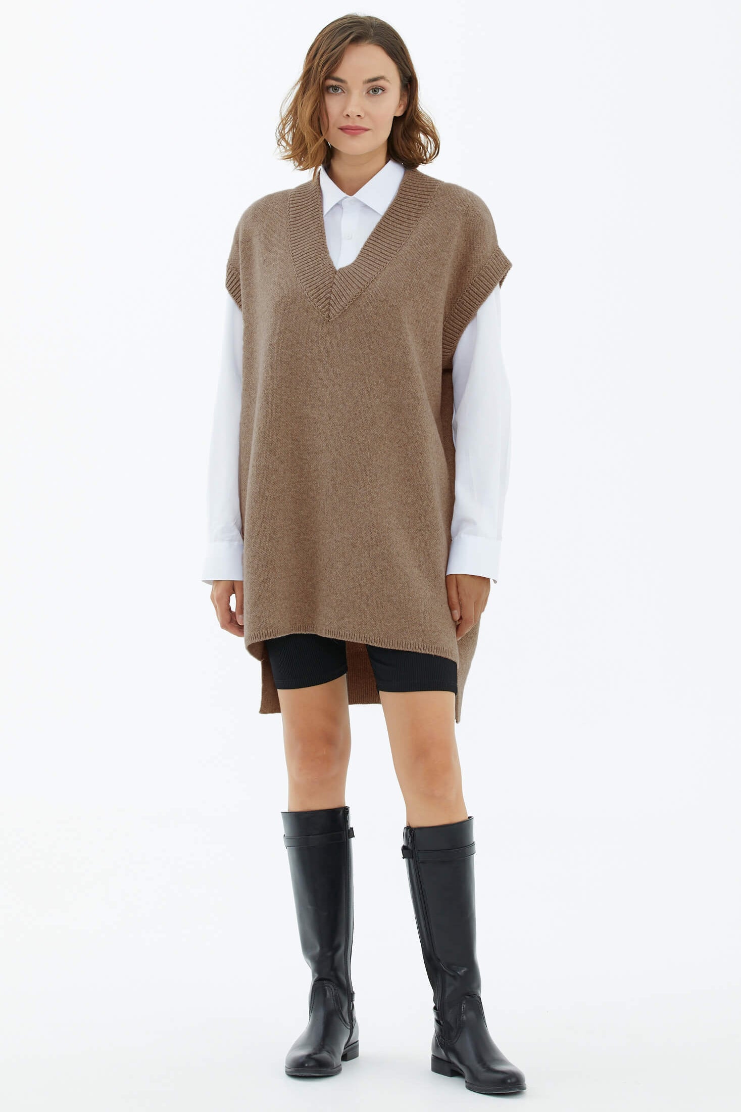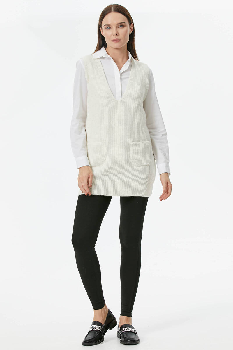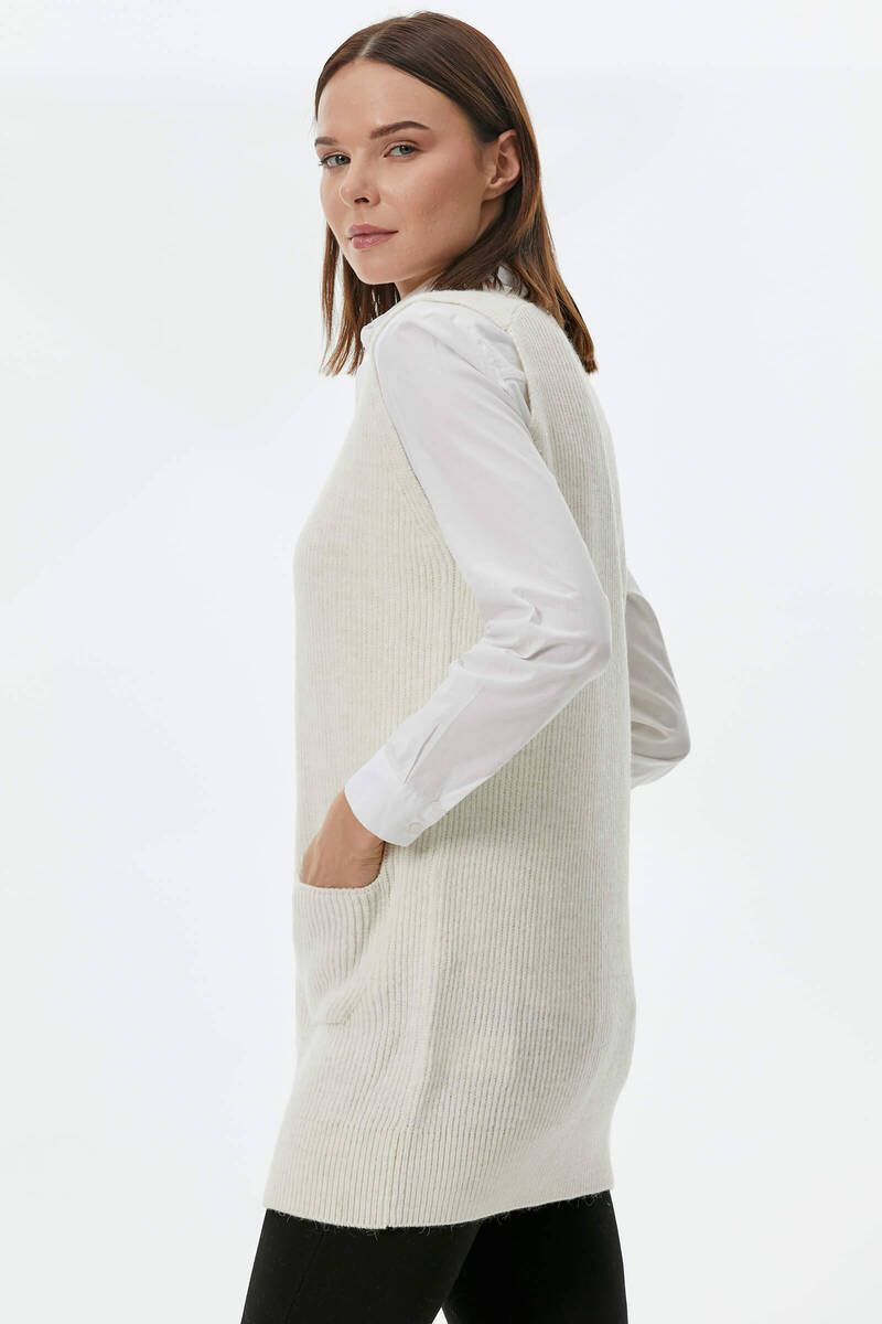 One of the new and attractive products in Sementa 's collection is the suspender knit sweater design that shines like a pearl among women's knit sweater models. This design, which is offered to your liking in three different color options, beige, tile and black, deserves your attention!