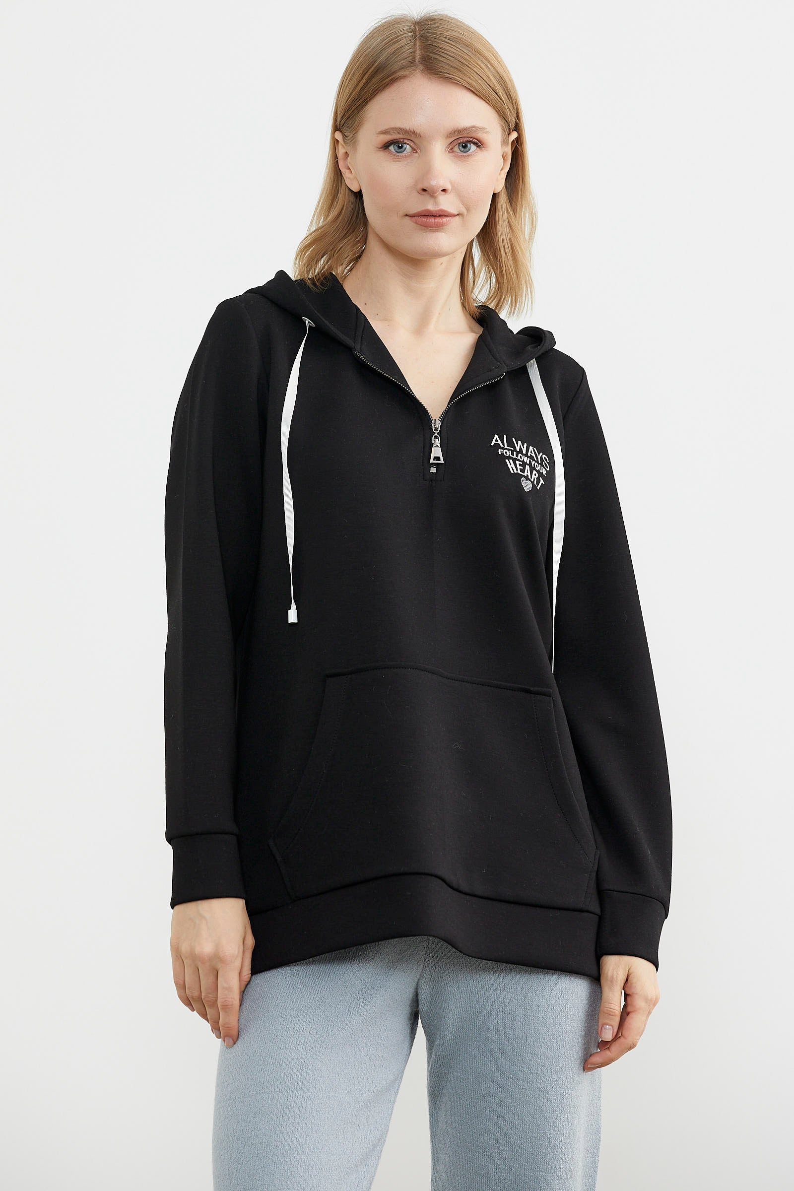 This cotton textured, adjustable hooded, printed collar, minimal slit, long sleeved thick sweatshirt will save you from cold winter days and provide comfort. An easy-to-combine piece should be indispensable in your wardrobe.