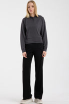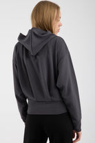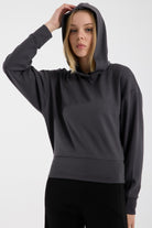 Kapüşonlu, uzun kollu crop sweatshirt. Sırtında plise detaylı, düşük kollu, nefes alabilen kumaştan üretilmiştir.