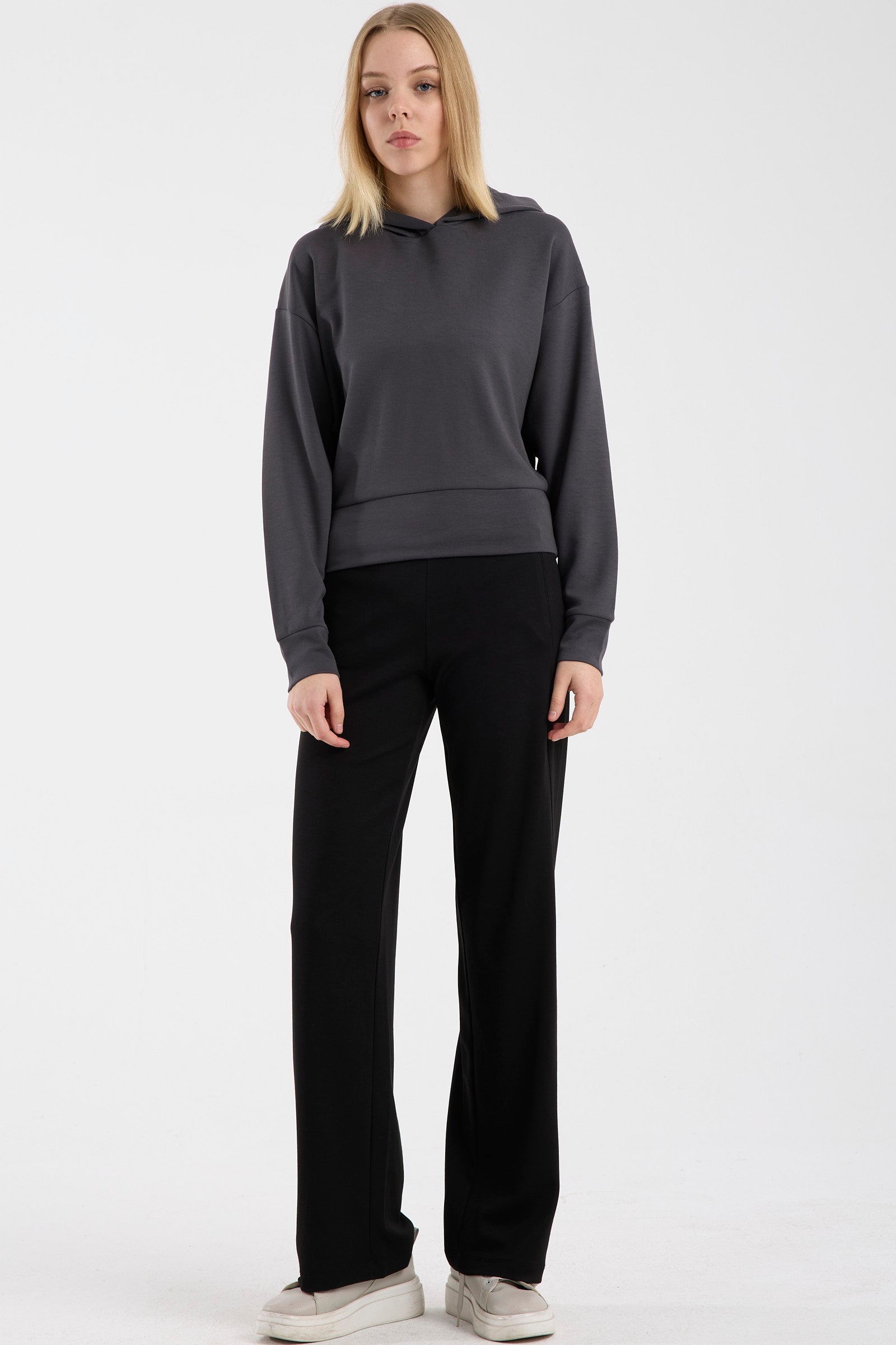 Oversize Kapüşonlu Yumuşak Dokulu Sweatshirt - Antrasit
