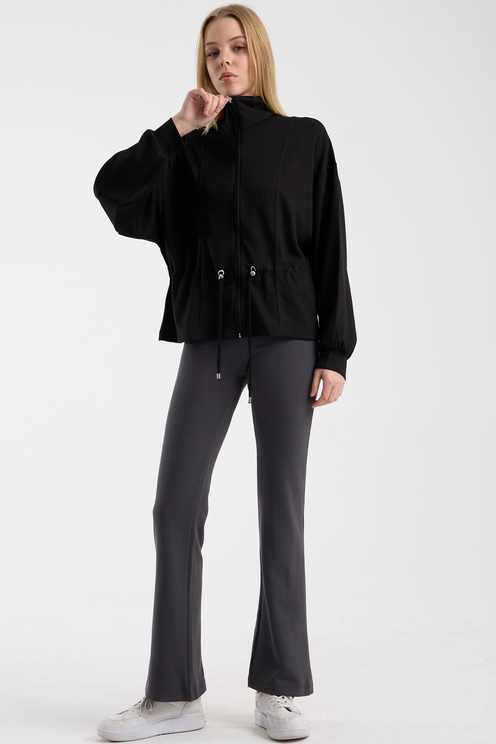 Yumuşak Dokulu Beli Ayarlanabilir Sweatshirt - Siyah