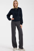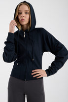Yumuşak Dokulu Crop Sweatshirt - Lacivert