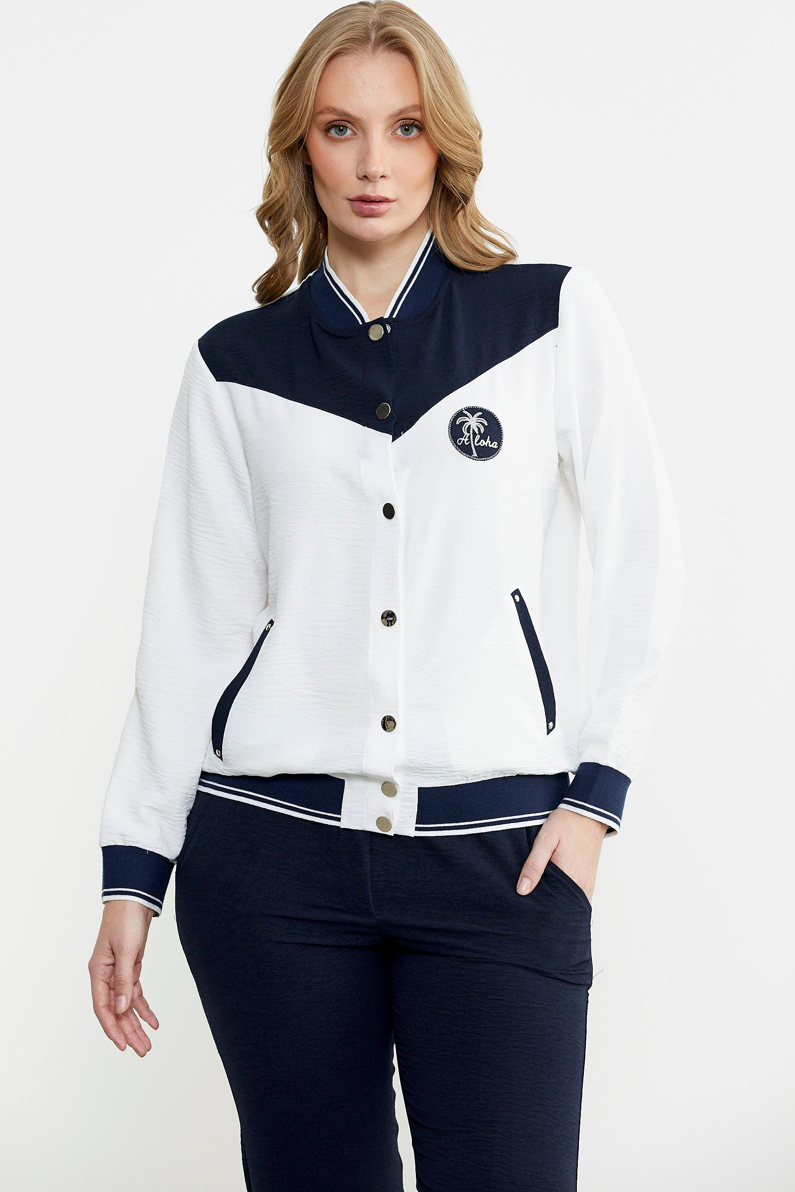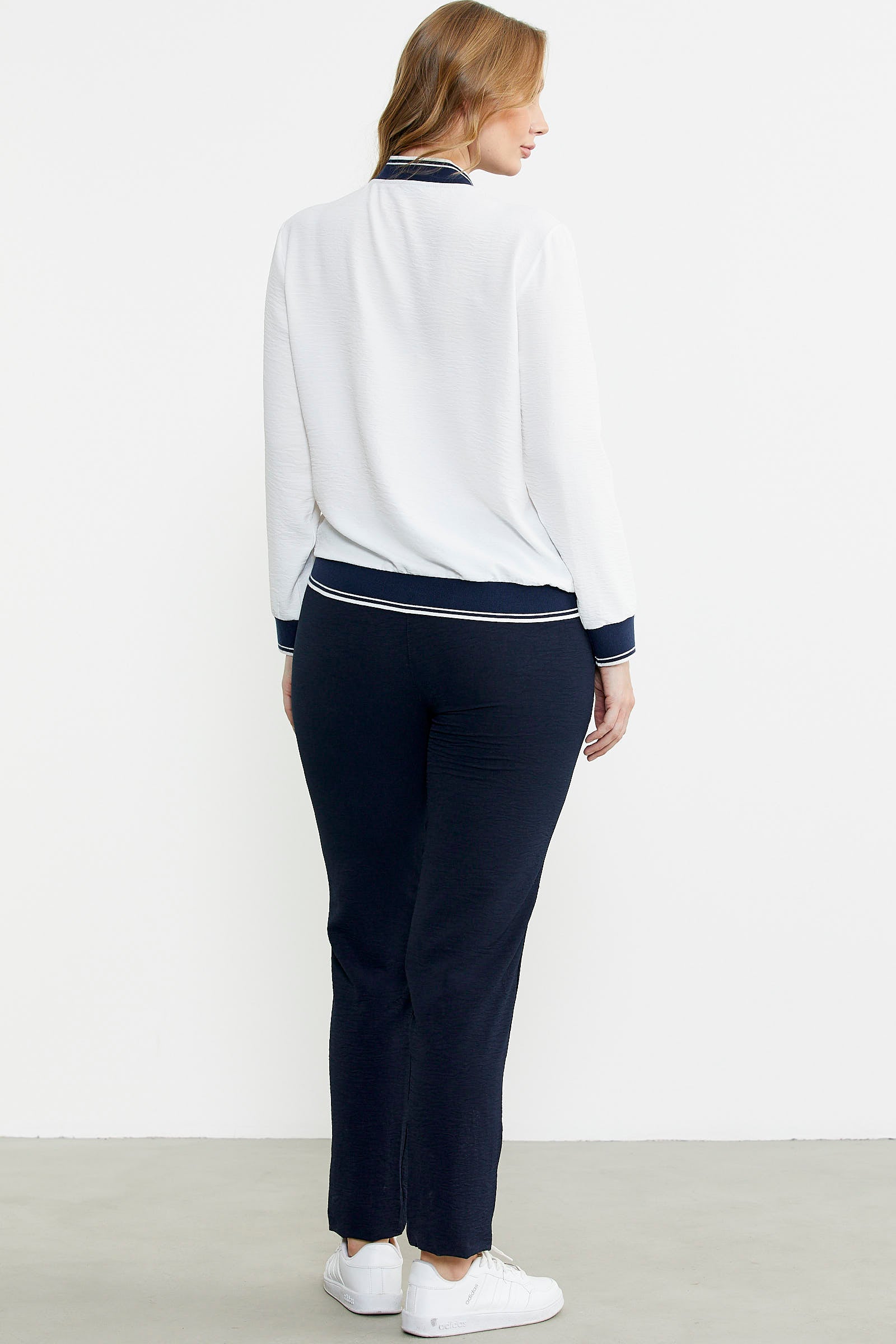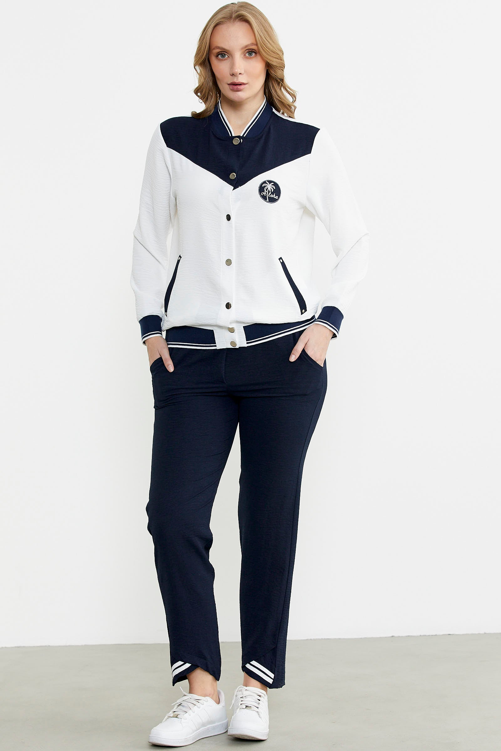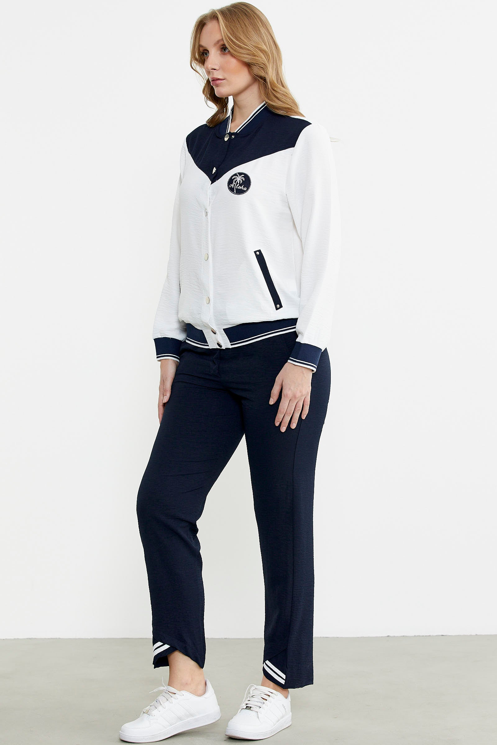 Crepe suit with snap closure and piping detail on the legs. It draws attention with its modern and stylish look.