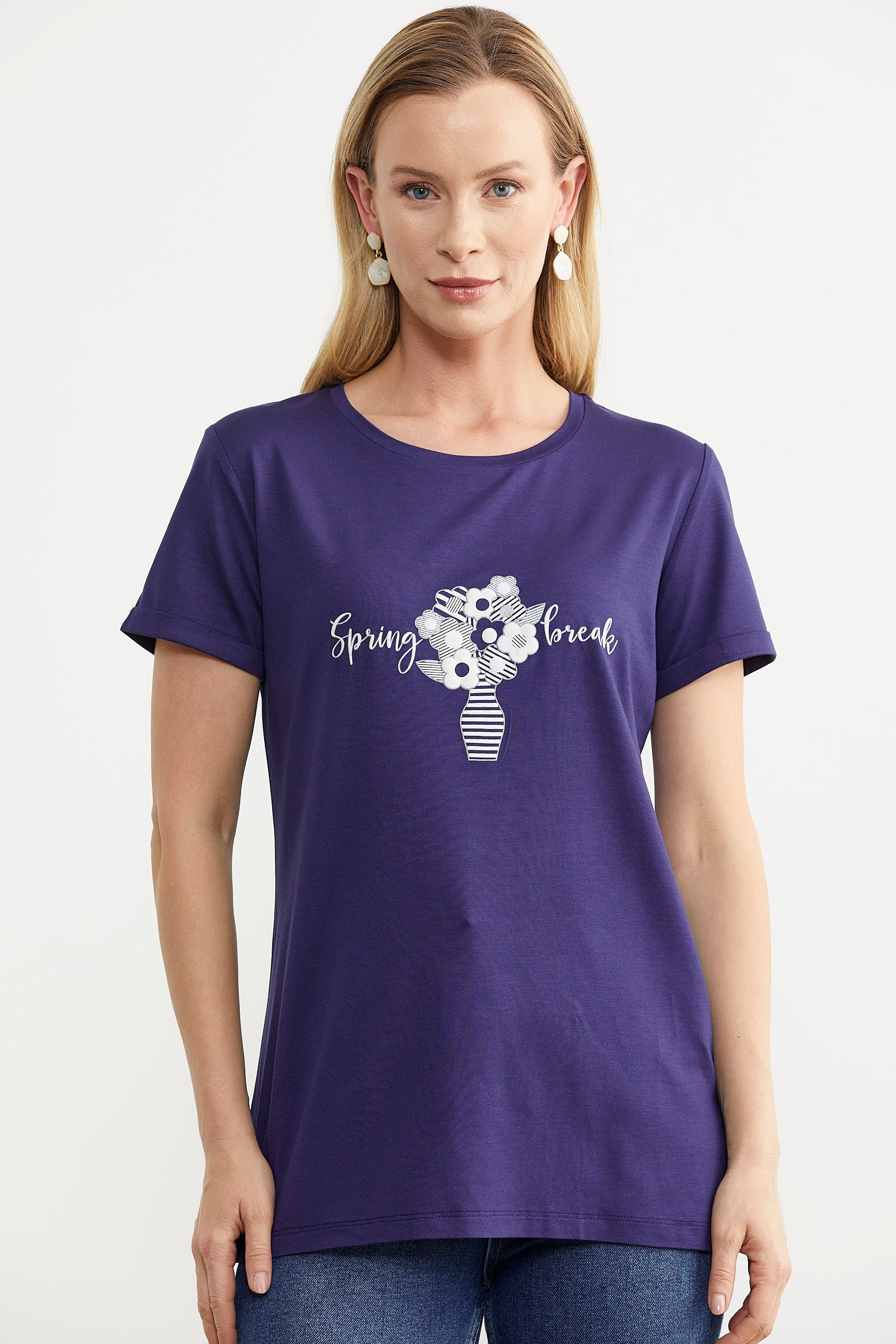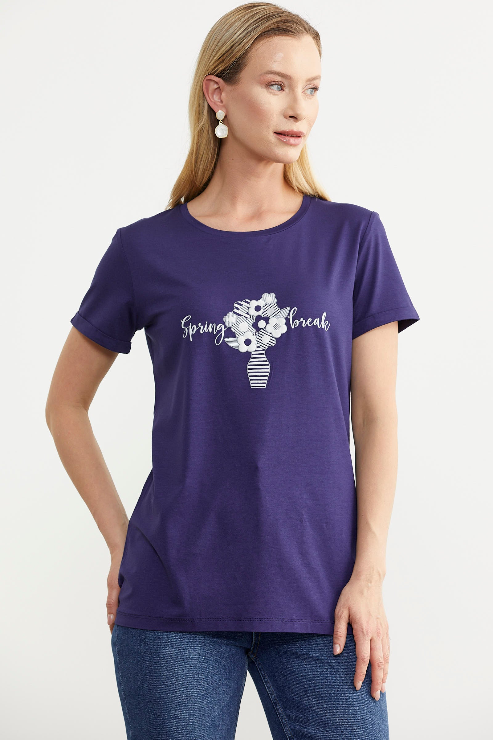 Floral Printed Regular Fit T-Shirt - Navy Blue