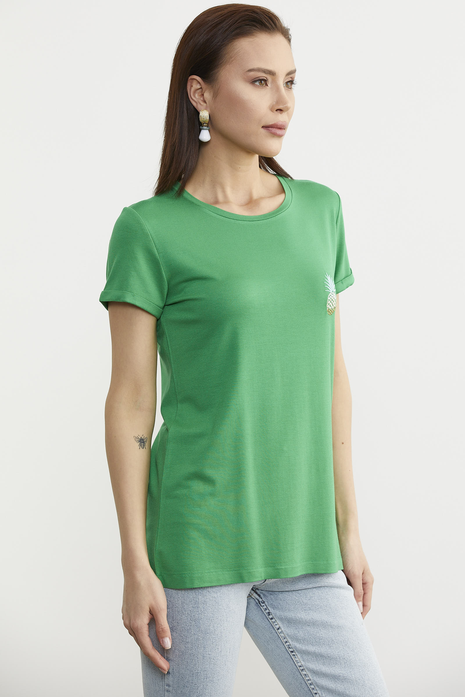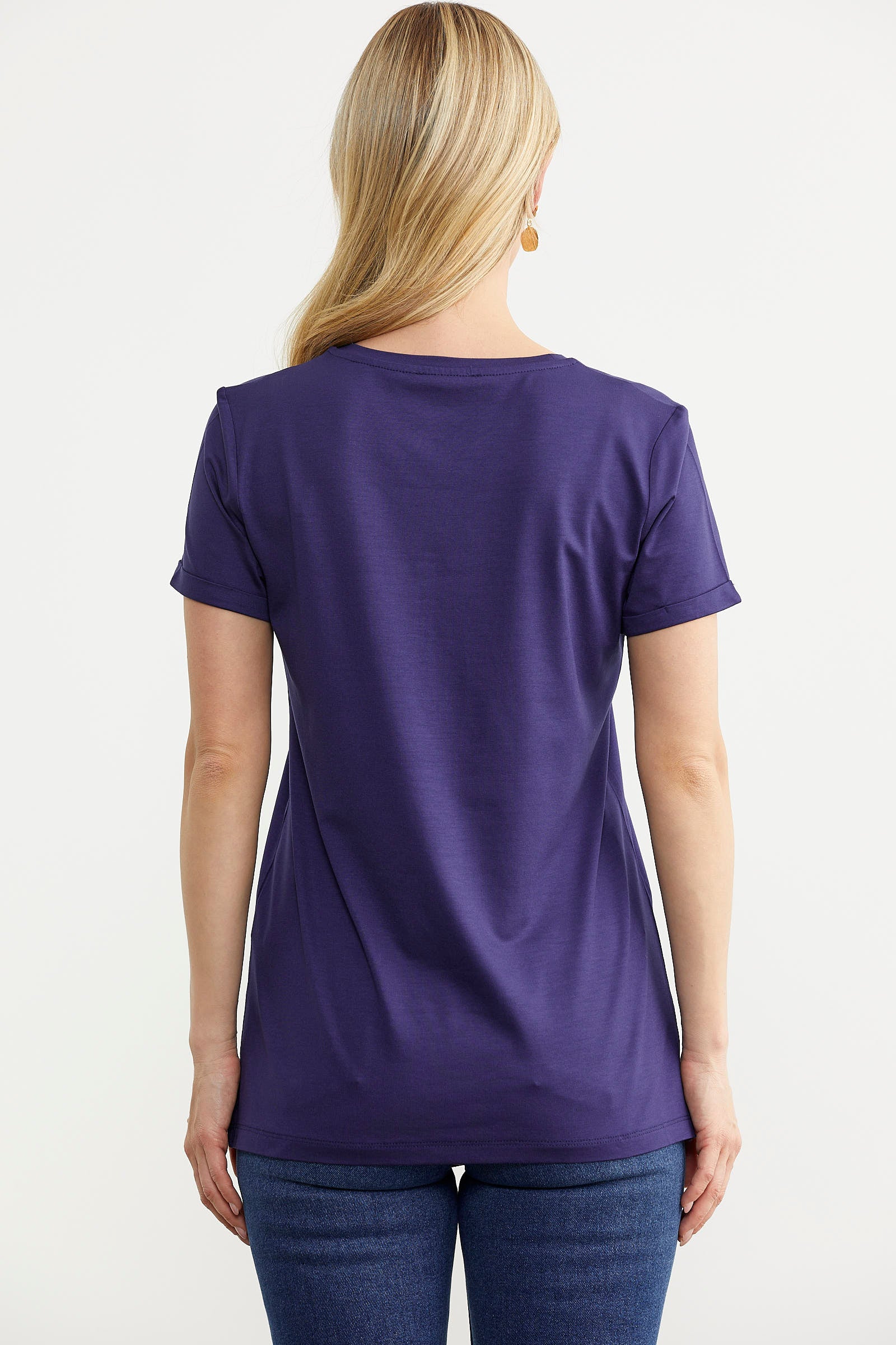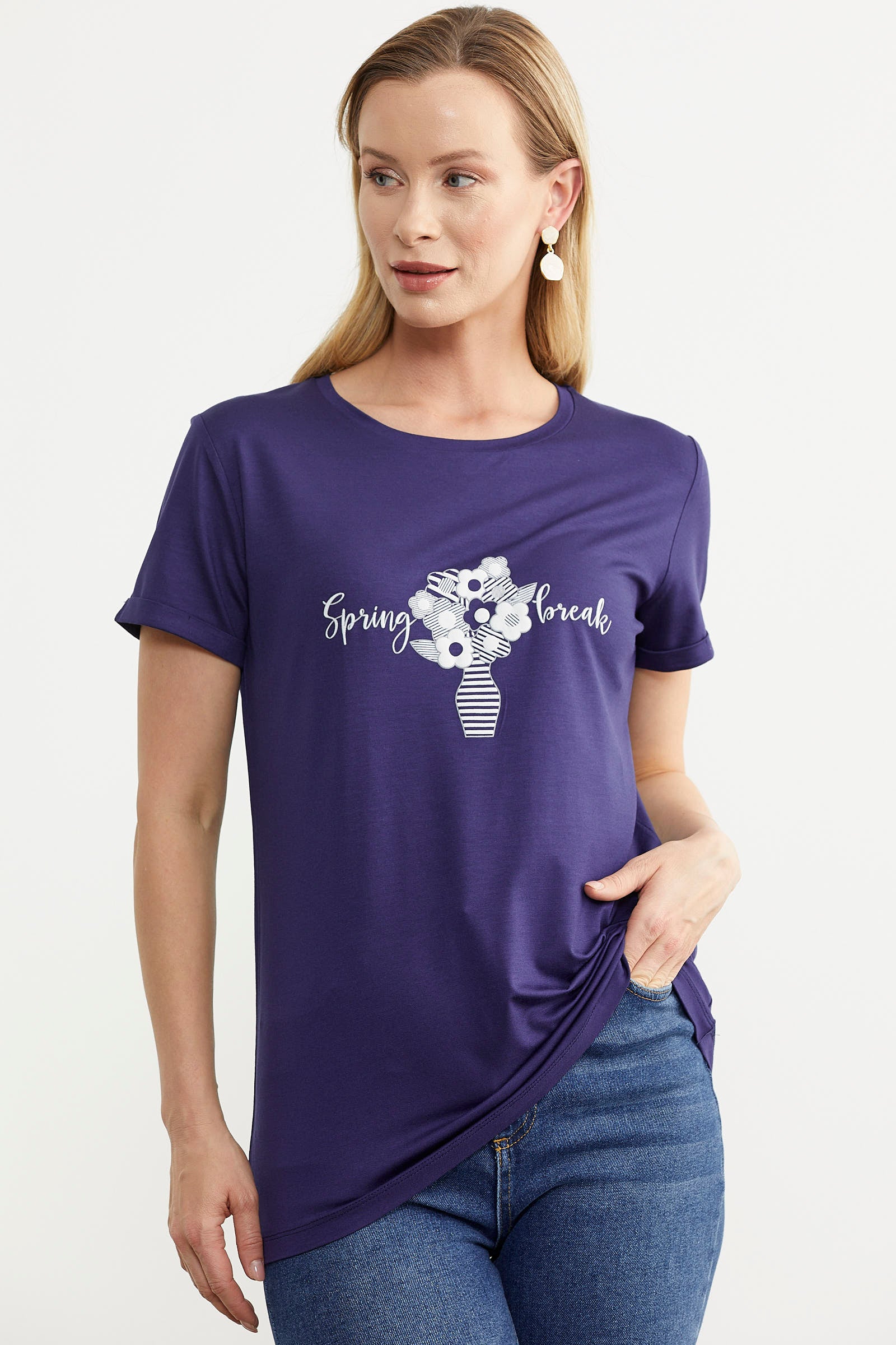 Designed as a crew neck, the t-shirt provides comfort with its soft texture and offers ease of combination.