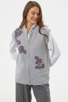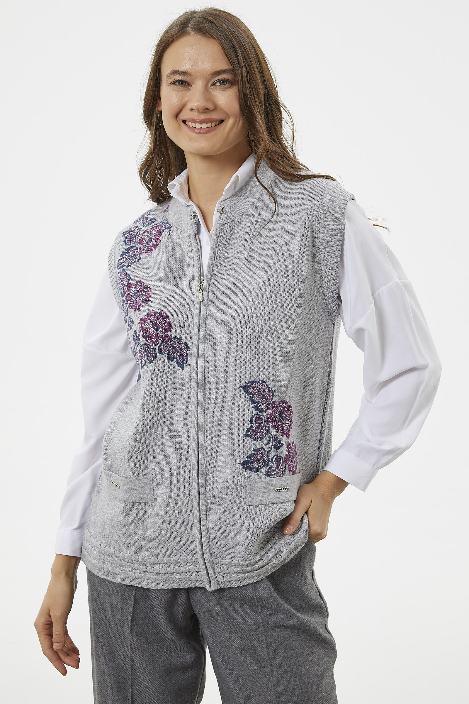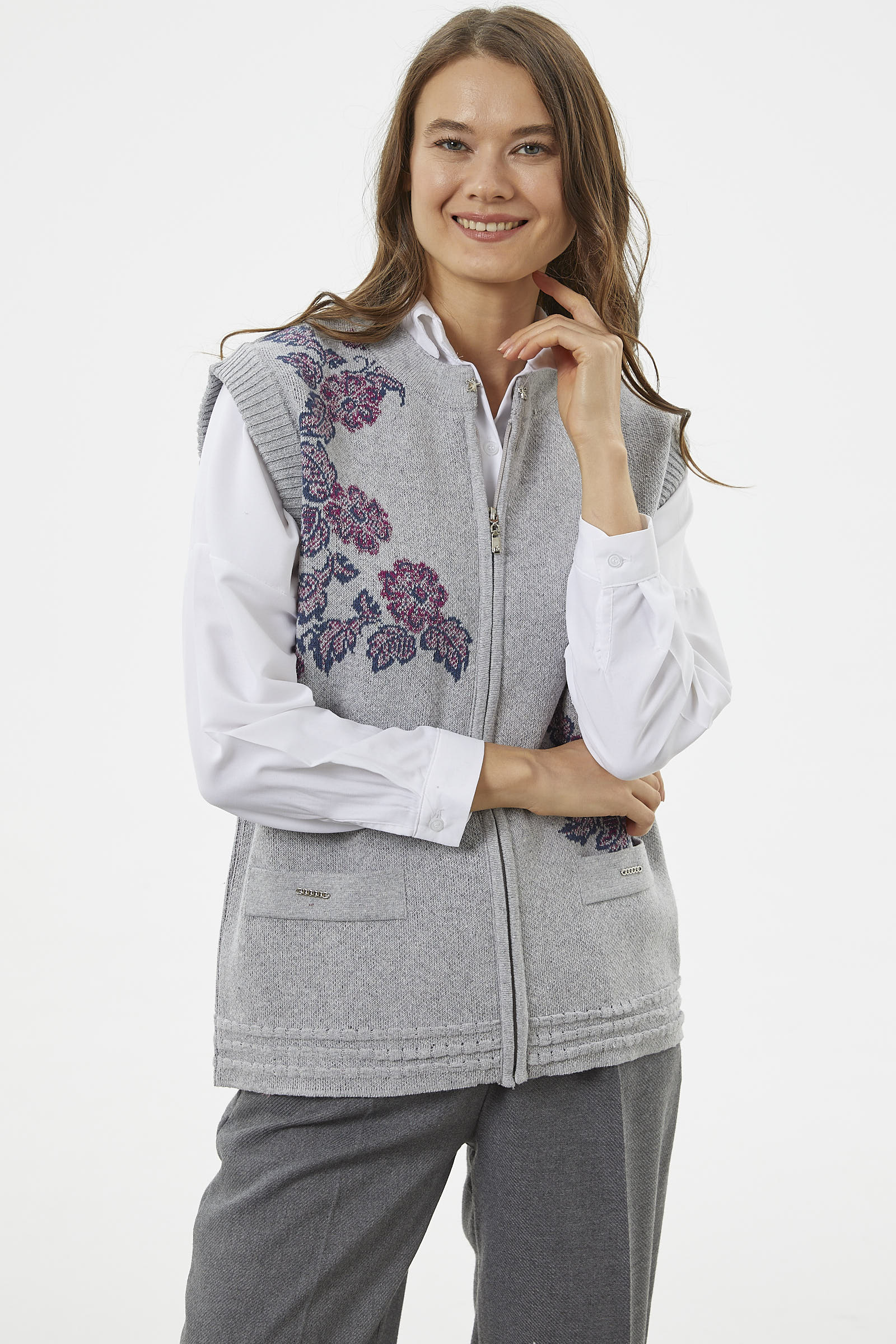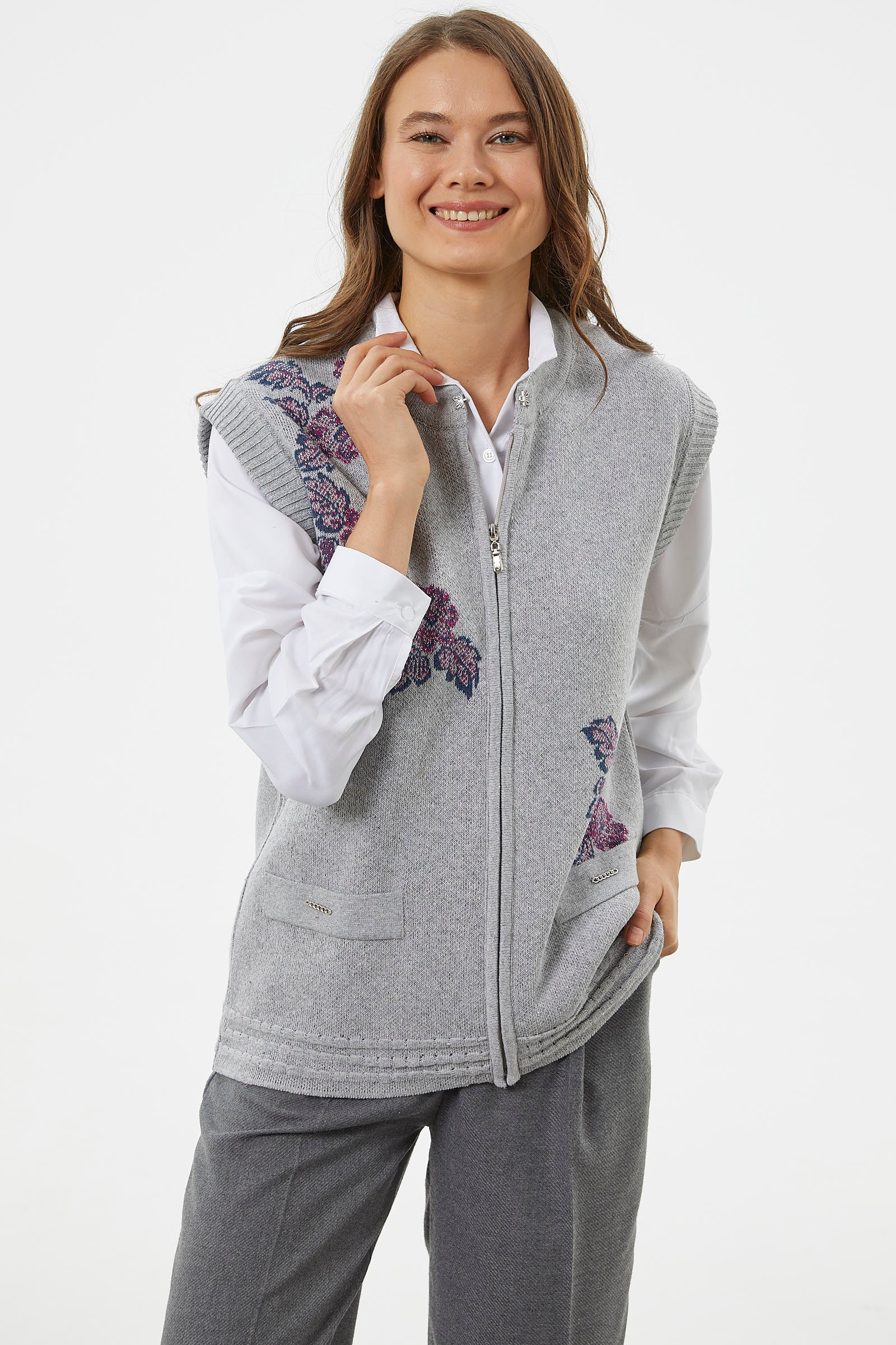 You can create a modern look with a zippered knitted vest that provides an elegant look with floral motifs. You will feel very comfortable with its design that fits your body perfectly.