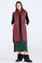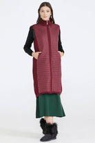 Women's Stand Up Collar Front Quilted Zippered Knitwear Vest - Claret Red