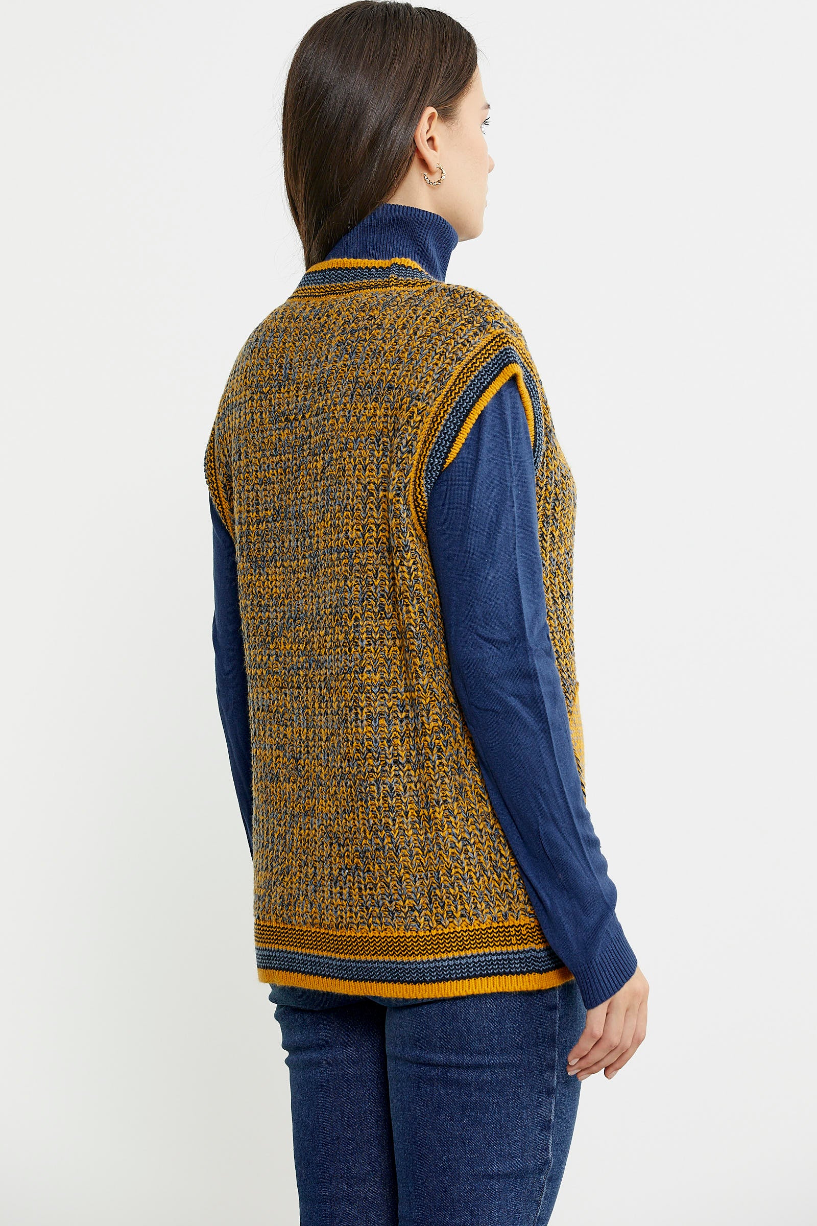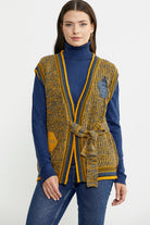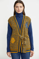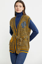 Color Combination Belted Wool Knit Vest - Sun