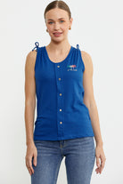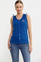 Sleeveless Blouse with Embroidery Details - Saks