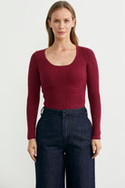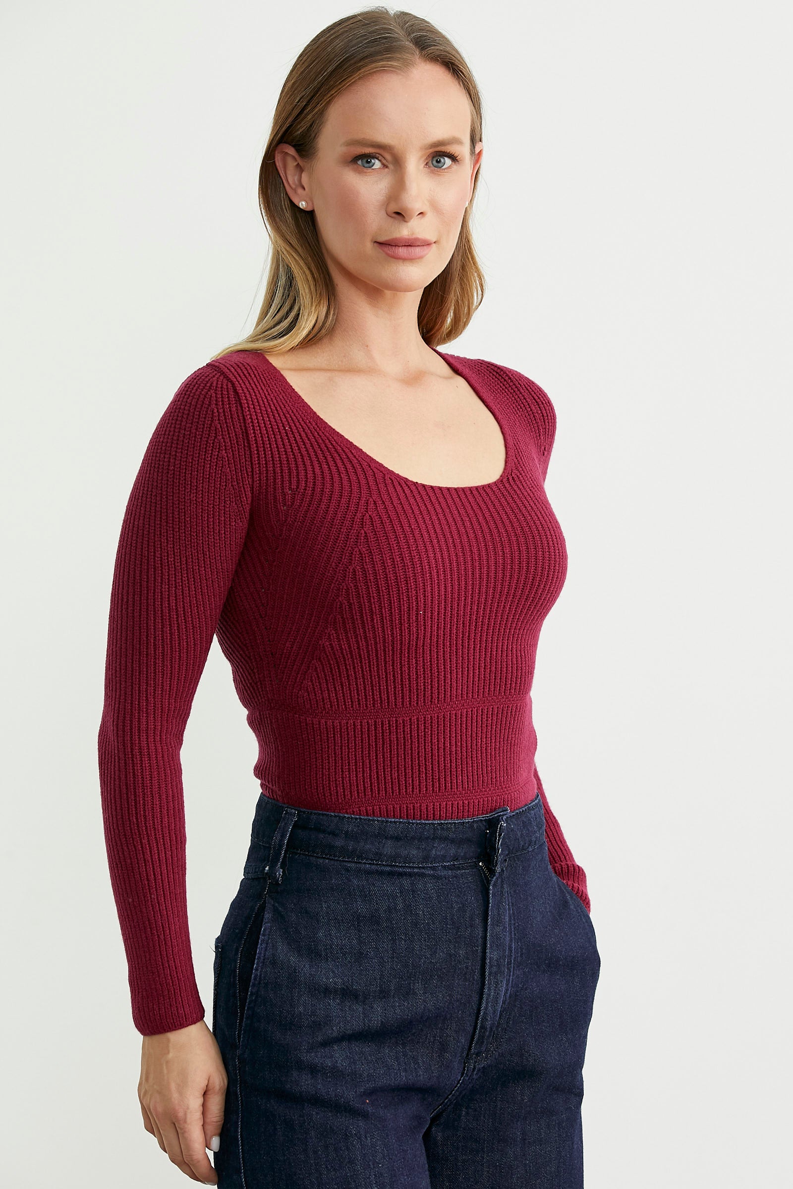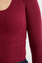 Fitilli Alttan Çıtçıtlı Triko Kazak - Bordo