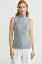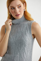 Tam Balıkçı Kolsuz Triko Kazak - Gri