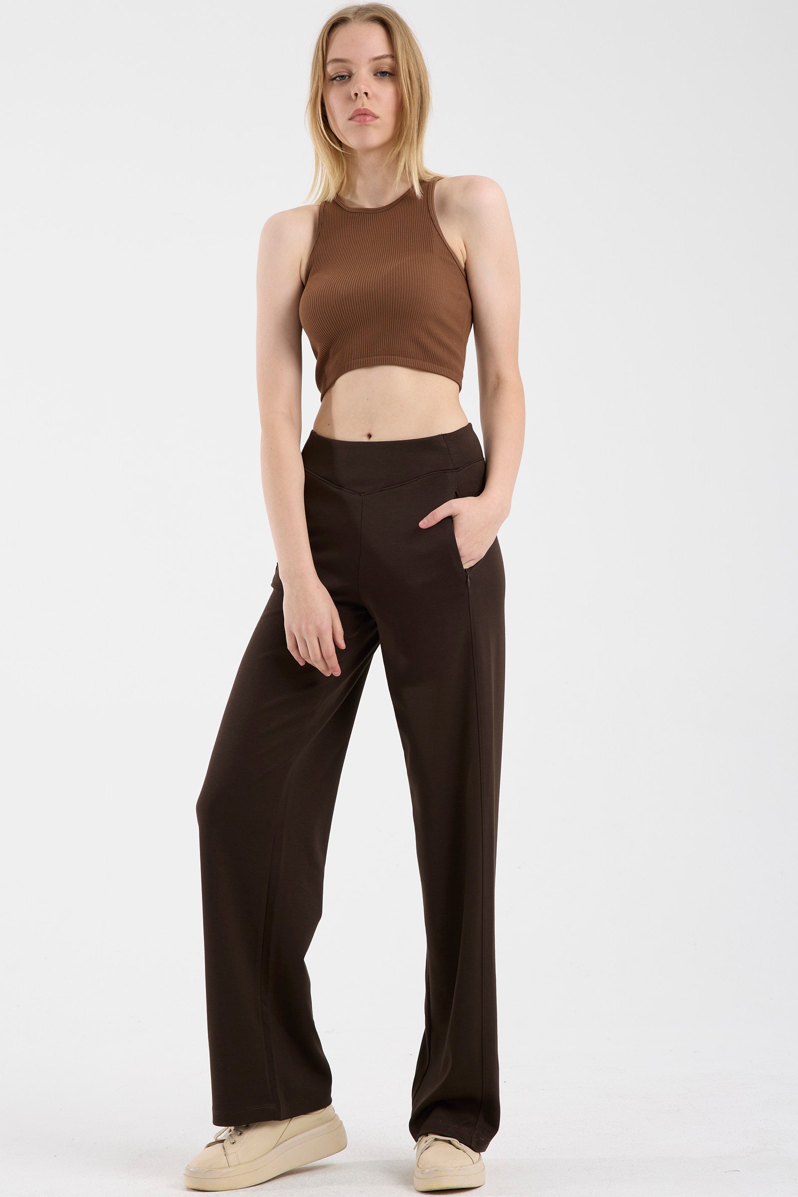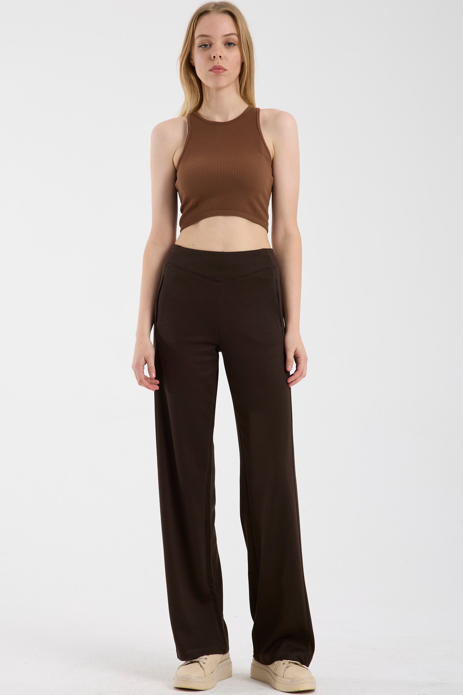 Yumuşak Dokulu Bol Paça Eşofman Alt - Kahve