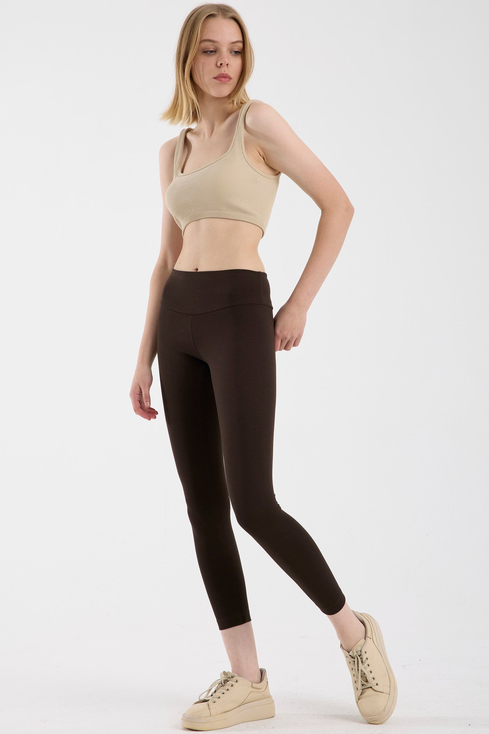Yumuşak Dokulu Yüksek Bel Toparlayıcı Tayt - Kahve