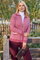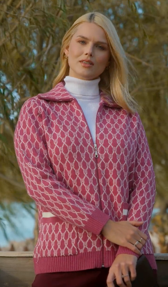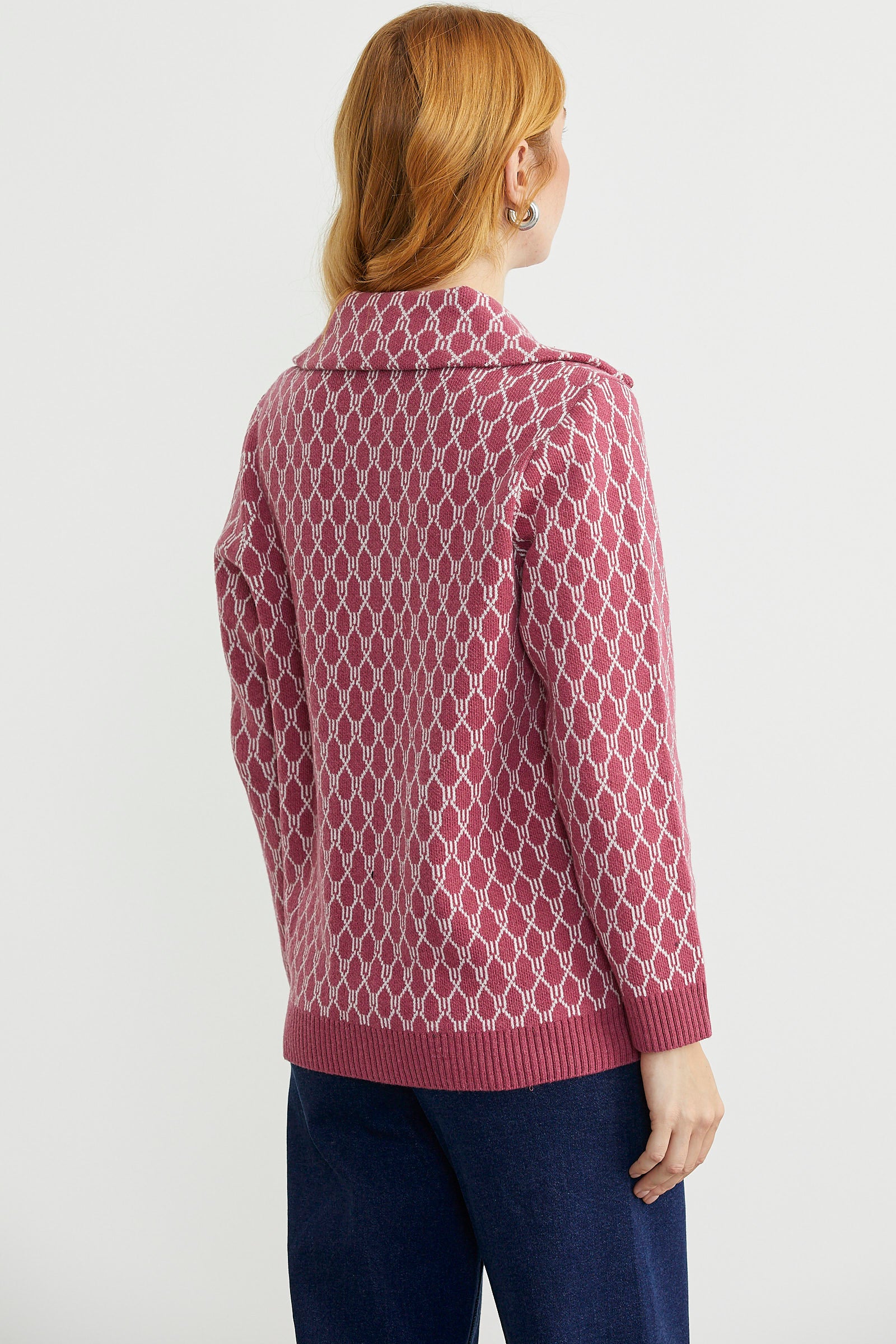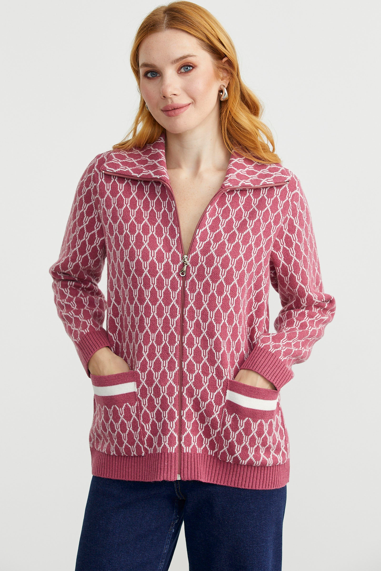 Çift Renk Kalın Yünlü Triko Hırka - Gül